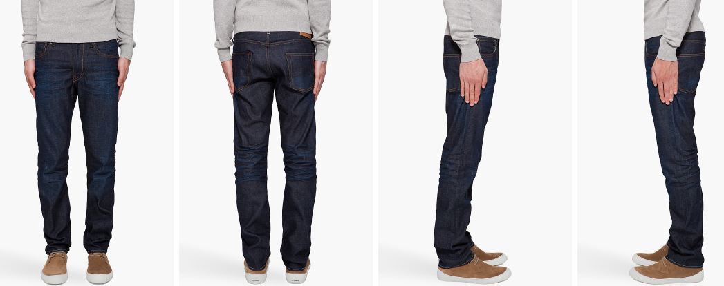 Hi Sasha, My beau needs back-to-school jeans, but he's not the typical back-to-school student. He's 37, a fourth-year Ph.D. student in business, and he's got a "signature outfit" that he wears every day--just like Steve Jobs, ha! It's a white Brooks Brothers dress shirt paired with dark "dressy" jeans, a chocolate brown belt with a simple silver buckle, and chocolate brown Allen Edmonds oxfords. His favorite cut and color got discontinued, so he needs a new one. He's 5'8", weighs 145 lbs. (marathoner's body, wiry and lean), and is the antithesis of "trendy." Meaning no weird washes or tints or whiskering. Just a simple, dark jean. Can you help? Thanks! P