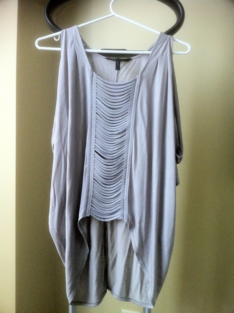 I bought a top (picture below) from BCBG over the weekend that I’m really down with. I’m always in need of tops that hover between casual and dressy and this is a winner for me. The front detailing adds just enough interest and the arms are perfectly draped for when your arms are up singing along with Umbrella – ella- ella. She better play that song.
