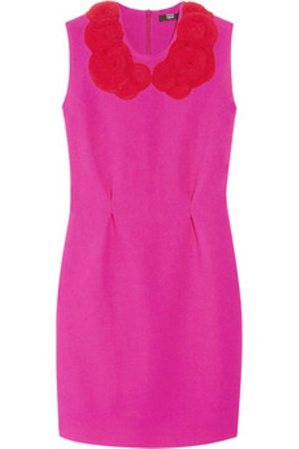 You didn’t give me a price range so I’m going to assume that if she’s elite enough to be invited, she might be rolling out some elite-level dough. First up, check out this kick ass hot pink dress. Gulp – I love it. Pink and Red has to be one of my favorite color combinations. But if that’s too expensive, then your friend could pick up this Elie Tahari dress and pin something like these red flowers on it. Same effect at a better price point.