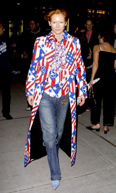 Every fashion type in the city is splooging over Tilda Swinton’s arrival and yes, I’m pretty pumped too. But I’m not so far up my ass that I’m going to pretend like I wanna talk about the artistry of her clothes - f*ck that noise. Tilda’s steez is as wacky as it comes and I can't wait to see what she brings this time. As you know she likes the androgynous look; lately though, she’s toned it down, for example when she showed up to Cannes in this gown by Haider Ackermann. Yes, she looked fantastic, but I’d WAY rather see more of this. Come on, how redonk and amazing is this! LOVE. Need more. Please Tilda, bring on the weird this week, please.