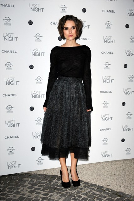 Another member of the Hollywood malnutrition club is Keira Knightly. I’m sorry, but seriously people, when I saw her at TIFF in 2008 I was truly concerned. I have no idea how that dress didn't fall off her rickety frame. But props to KK because since then she’s been looking healthier and I’m enjoying her style a lot more because of it. She really looks her best when she does two things: 1) when she covers up her emaciated clavicle and 2) when she wears black. Look at her below - case in point. It’s one of my favorites and of course it’s head to toe Chanel. So as long as Keira keeps this up and doesn’t morph into Skeletor … I’ll be happy.