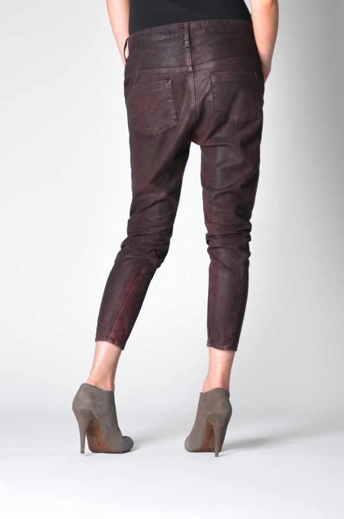 There's so much to love about these jeans - the bordeaux hue, the cool faux suede texture, but what really seals the deal is the fit! They hang perfectly off the waist and sweep in for a slim fit at the ankle, so whether your sporting heels or kicks you'll be oozing flyness. Style note: If you're packing some juice in the hips and ass then I recommend going up two sizes so you can get the right amount of slouch and swagger.