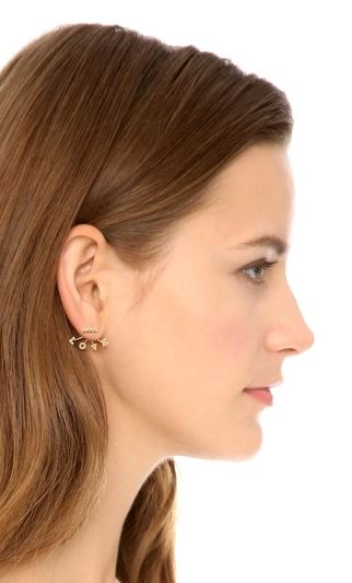 What you ask is an ear jacket? Well, instead of sh-t climbing up your actual ear, this style hangs just below your lobe giving the illusion it's just free balling in style. Pair that with the word "love" .... SOLD to this sucker.