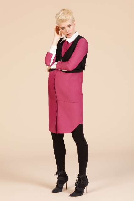 A few standouts for me: the cropped vest overtop the pretty floral dress, the slick black power suit, the contrast collar button-up shirt dresses, and from what I hear coats are always a challenge, but they seem to have solved that problem with a few great roomy styles.