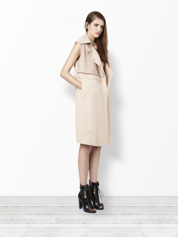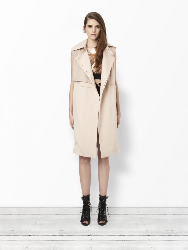 So let me start by blowing a ray of sunshine into your heart with this amazing sleeveless trench. Where do I start fawning? The length, the gold hardware, the leather panel overlay, the fact that it will go with everything. You get the point...it's bloody perfect.