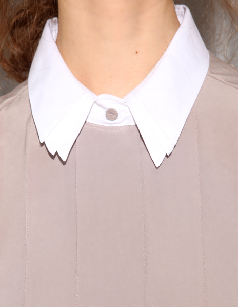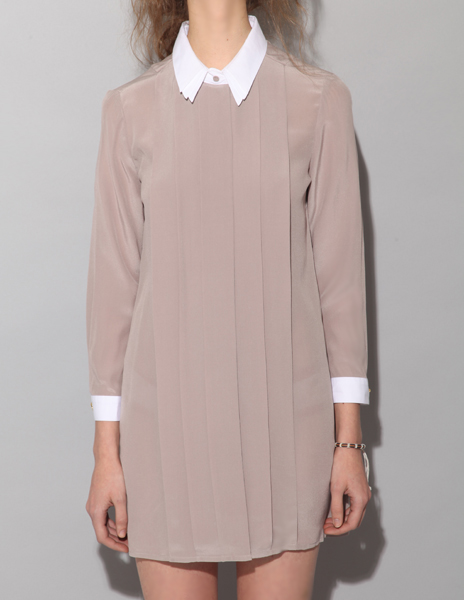 Come on though, how can you resist it?! The pleats, the soft pale mauve, the jagged detail on the collar tip. It’s pretty dang perfect.