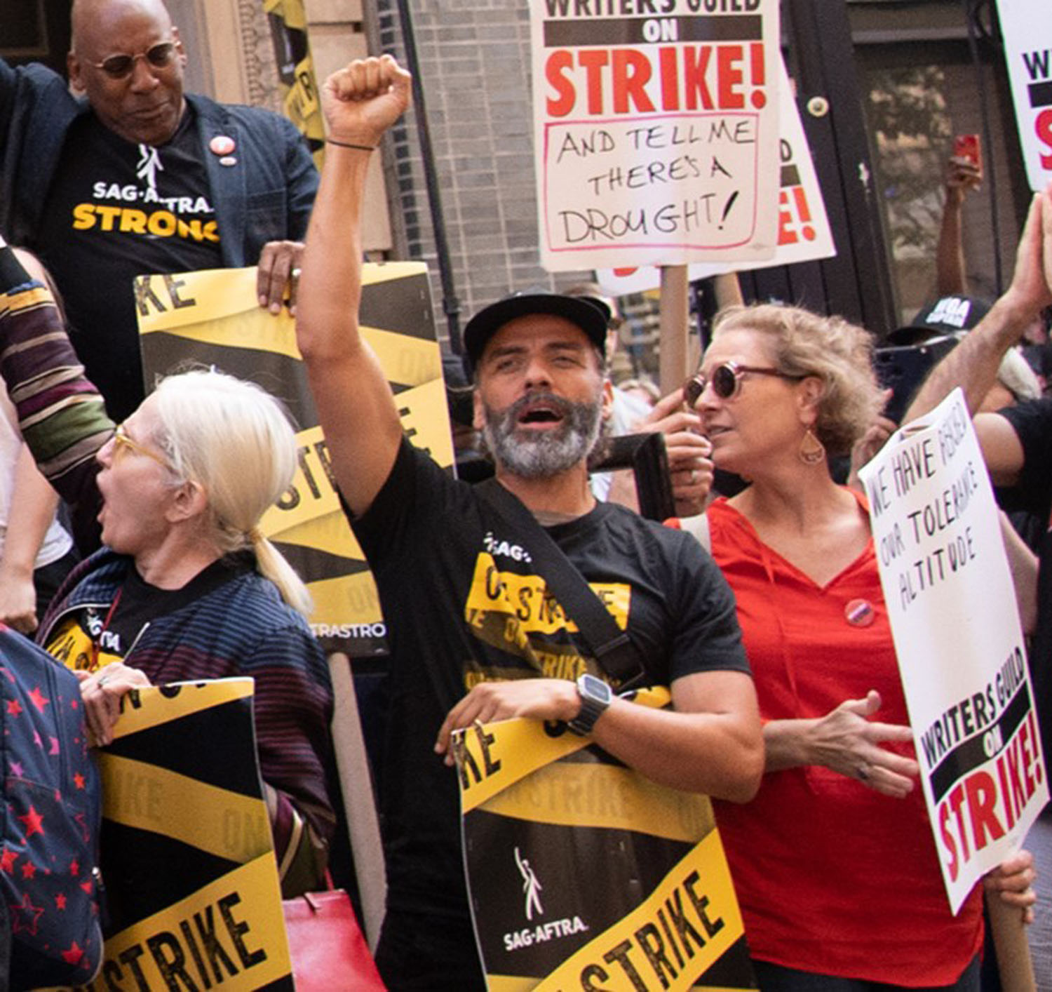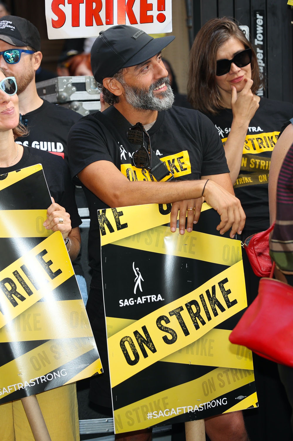 Attached - Oscar Isaac on strike yesterday in New York.