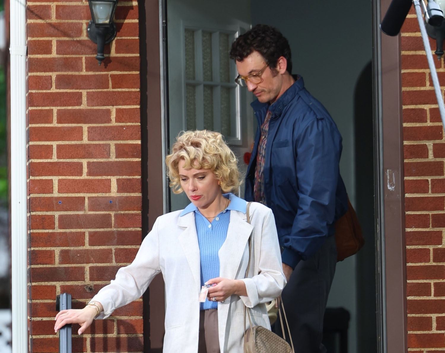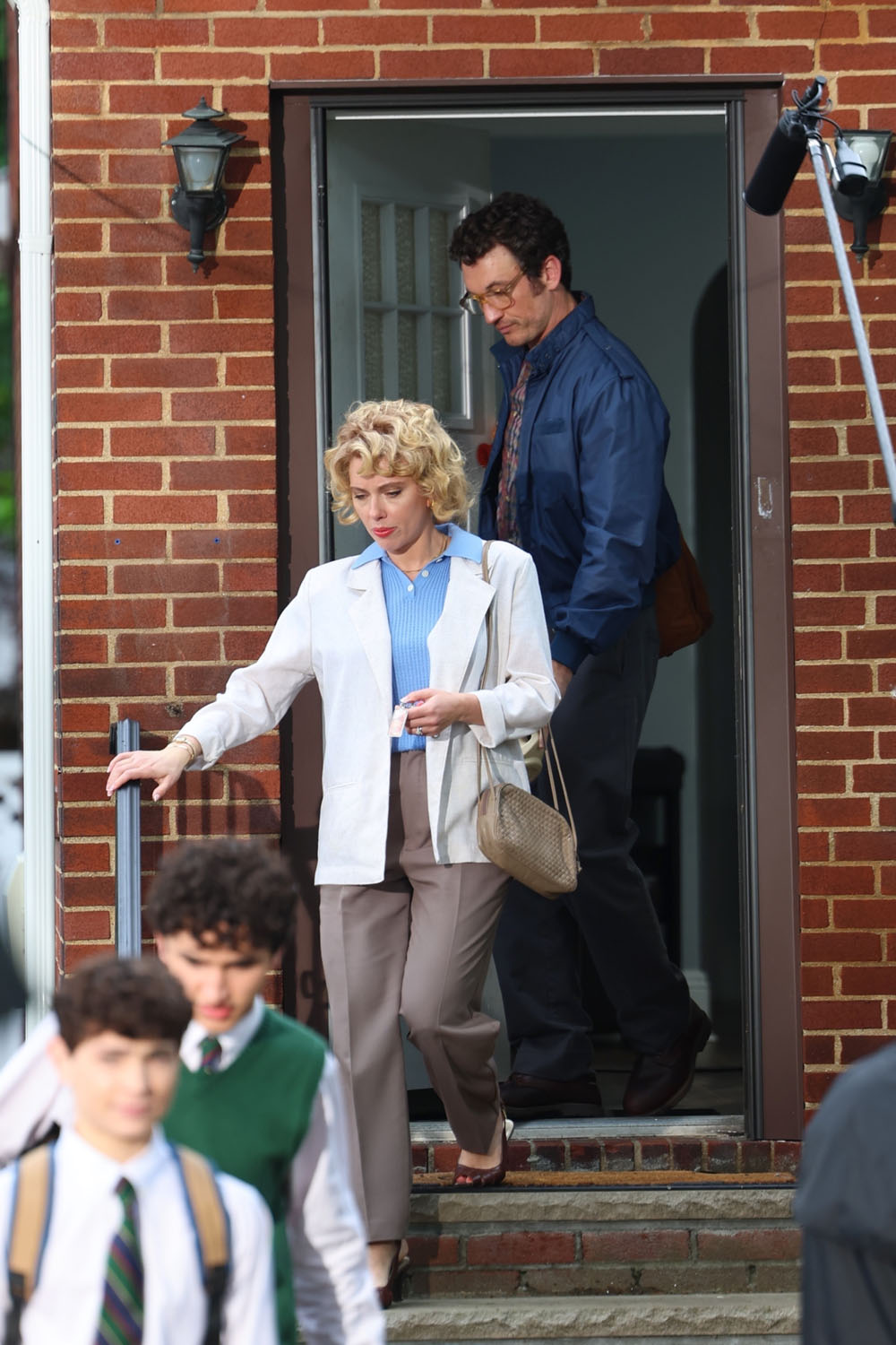 Gray talked about making a sequel focusing on Esther Graff, the mother played by Anne Hathaway, back when Armageddon Time was rolling out. However, timing didn’t work out for Hathaway or Jeremy Strong, and so now Esther is played by ScarJo and Irving Graff is played by Miles Teller. Anne Hathaway to ScarJo feels like a lateral move, they’re similarly capable actors, though Hathaway plays histrionics better than ScarJo. But Jeremy Strong to Miles Teller? THEE Jeremy Strong to Miles TELLER? Jeremy “Colorful Suits Are My Bliss” Strong to Miles “You Liked It When You Thought Glen Powell Was Going To Kiss Me In Top Gun” Teller?