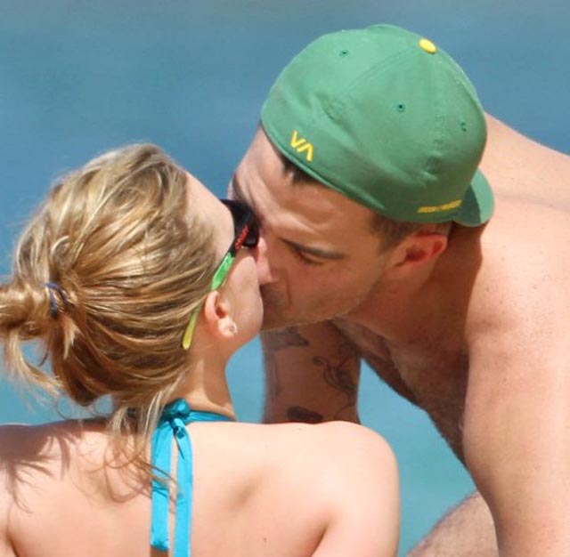 Shots on the beach? Bikinis and affection? No attempt to hide, no misspelled sign accusing photographers are harassment? I can’t figure out if it’s for her own benefit or for his. But suddenly she’s not so surly. Suddenly she’s not so allergic to it. I’m not saying she’s LeAnn Rimes or anything, but this is new behaviour for sure. And, oh, on Friday too.
