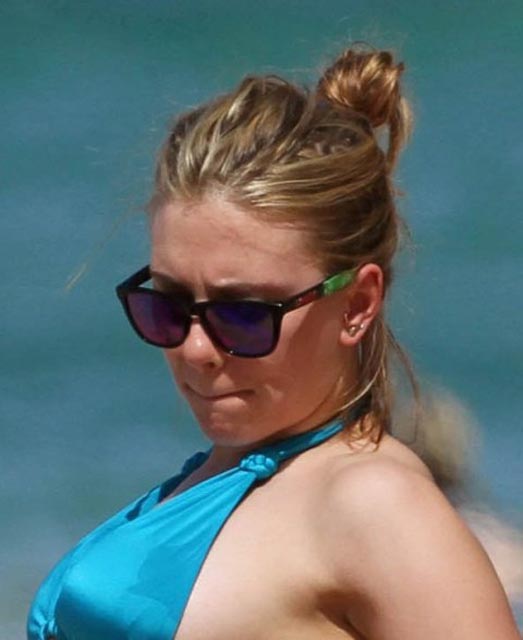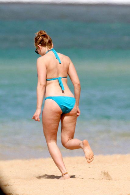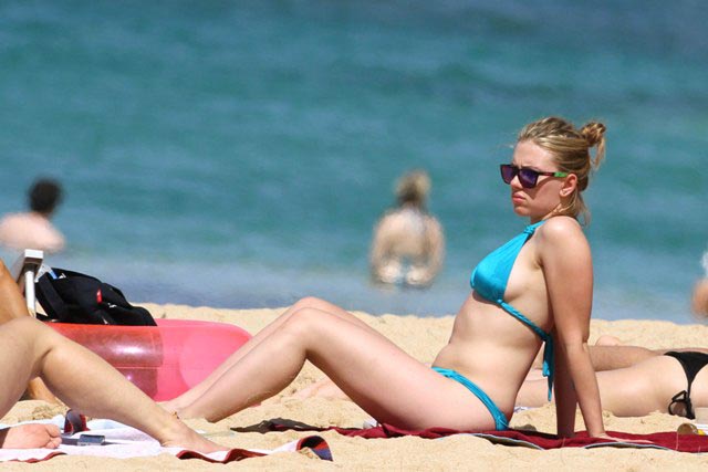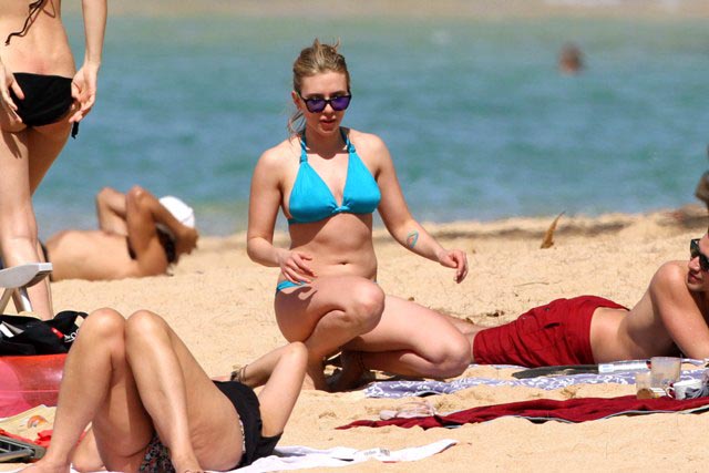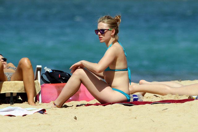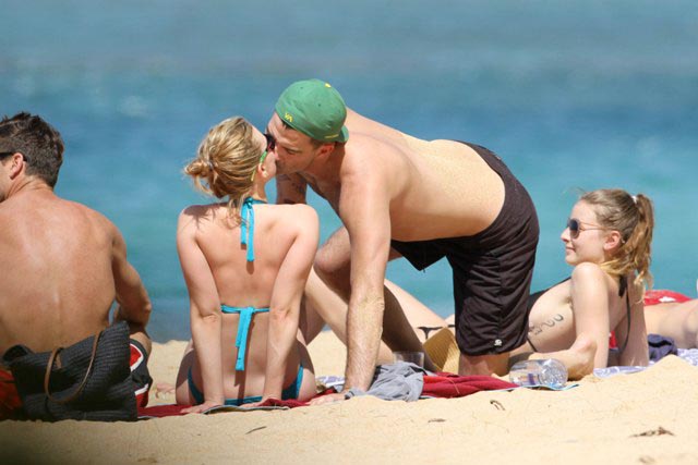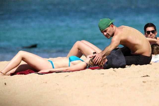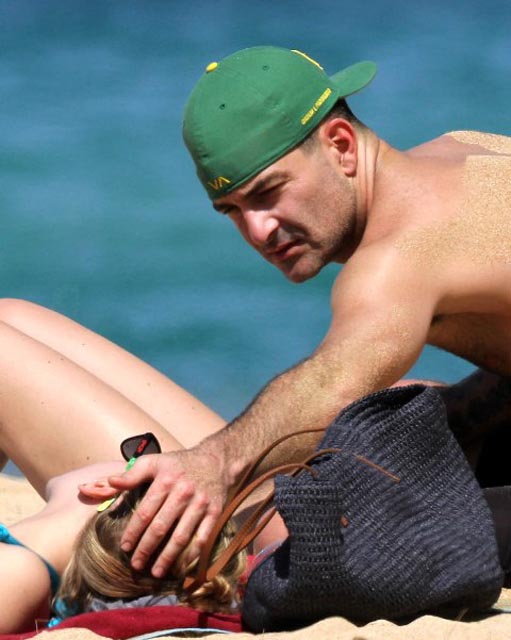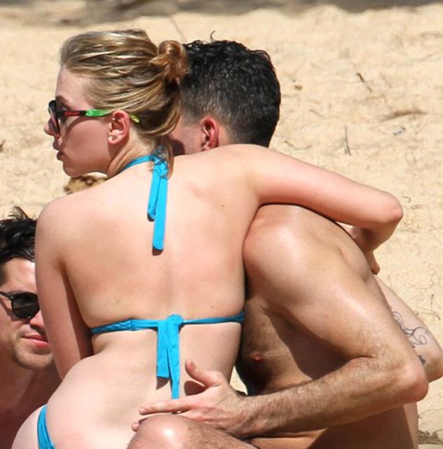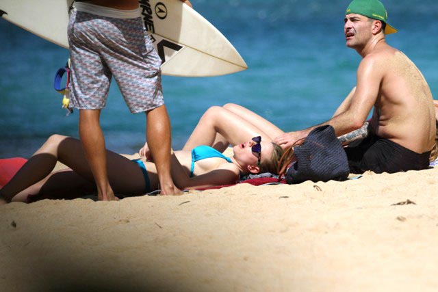Shots on the beach? Bikinis and affection? No attempt to hide, no misspelled sign accusing photographers are harassment? I can’t figure out if it’s for her own benefit or for his. But suddenly she’s not so surly. Suddenly she’s not so allergic to it. I’m not saying she’s LeAnn Rimes or anything, but this is new behaviour for sure. And, oh, on Friday too.