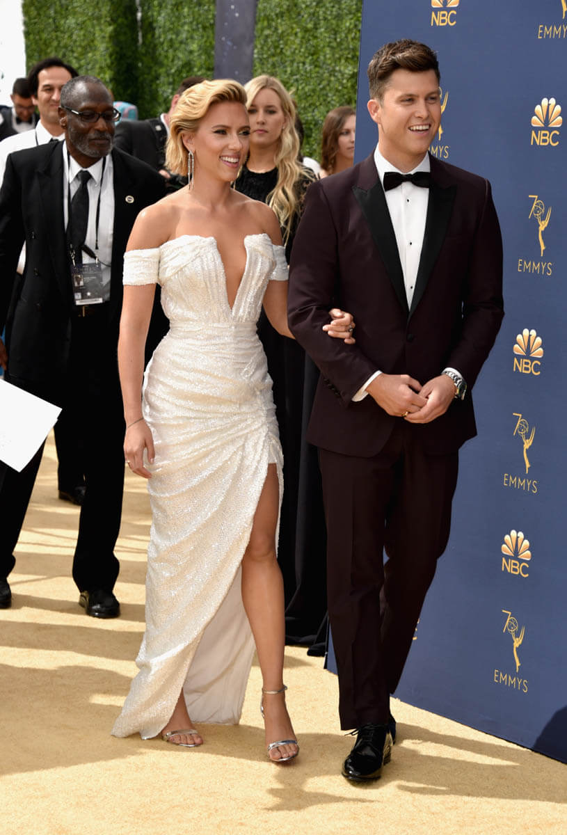 This is not the first major event that Scarlett Johansson and Colin Jost have attended together and walked the red carpet for. He accompanied her to the Avengers: Infinity War premiere. And then again at the Met Gala. The newness, then, is gone. The strangeness of them as a couple of though – is that gone too?