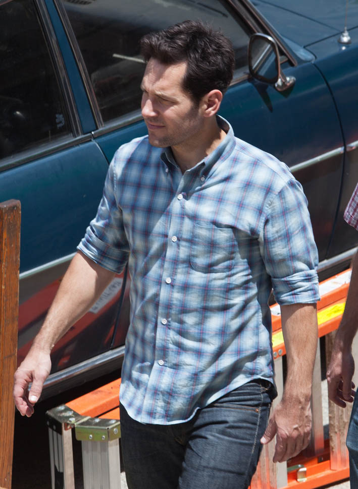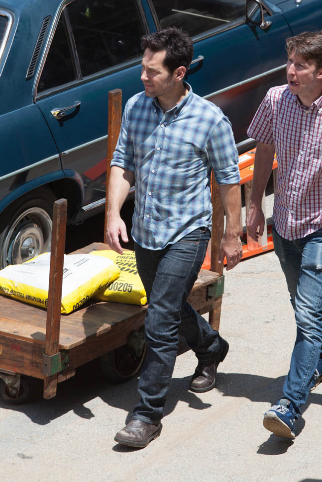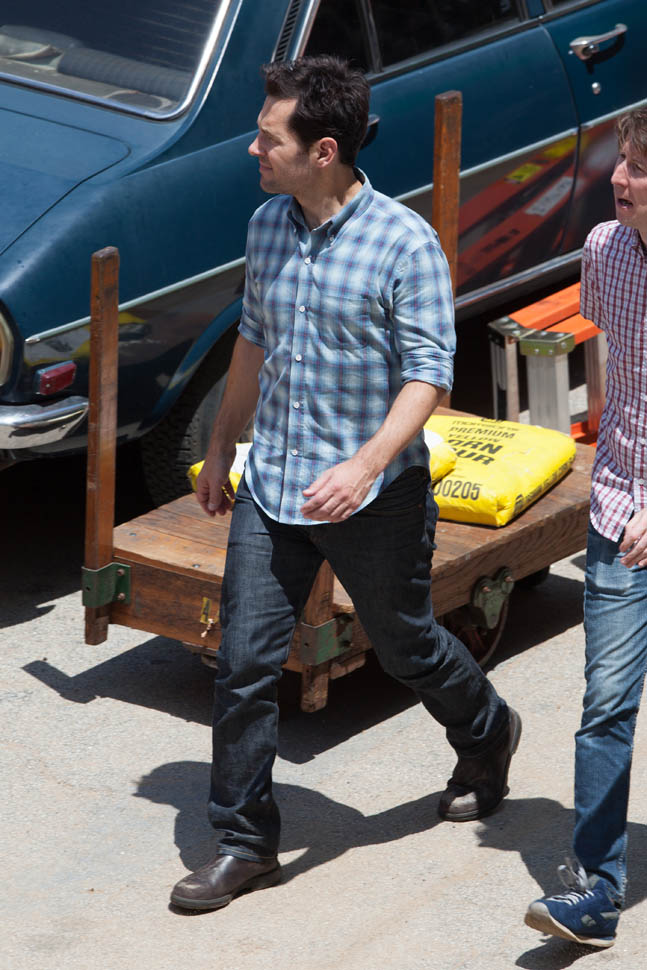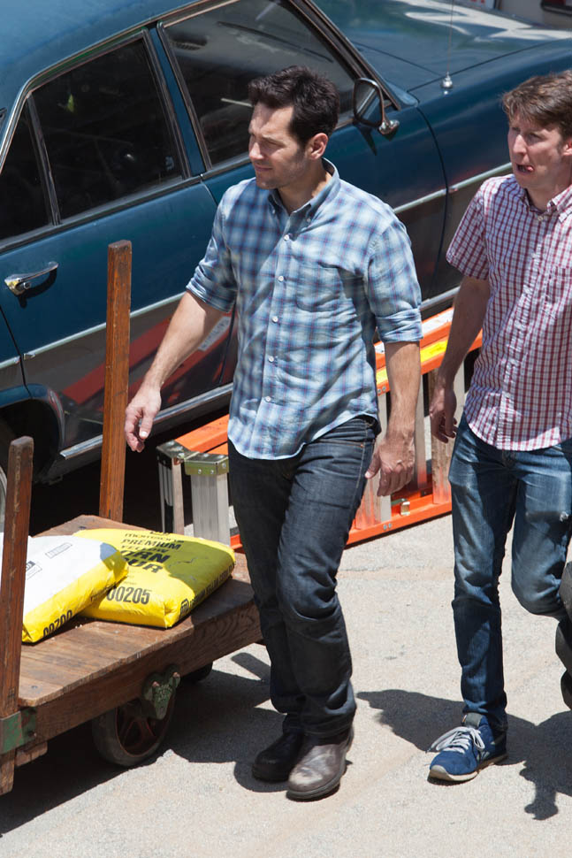 More photos from the Atlanta set of Captain America: Civil War, including Scarlett Johansson sporting what I think is Black Widow’s best-ever wig, and Paul Rudd reporting to set. Rudd will make his debut as Ant-Man in a couple months, but he’s already moving up the ranks to full-blown Avenger for Civil War. Yes, there are a lot of people in this movie—it’s called “Civil WAR”. If there were just a few people in it, it would be “Civil Debate”, or “Civil Polite Disagreement Amongst Friends”. This is not about the Avengers squabbling, like they did in Avengers: Age of Ultron. The point of this exercise is to burn the Avengers to the f*cking ground. To that end, every cinematic hero except Thor and Bruce Banner are in this movie, so that they can more ably tear each other apart.
