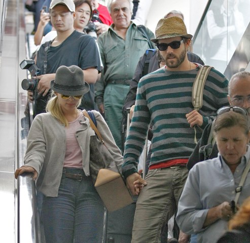 Check it out – Scarjo and Ryan Reynolds after spending a hot weekend together in Vancouver arrived back in LA yesterday holding hands and not hiding. When in Canada the two were virtually undisturbed, dining at West in South Granville, shopping for fresh flowers in the afternoons, and even brunching with his family – a sure indication they’ve stepped up the seriousness of their relationship.