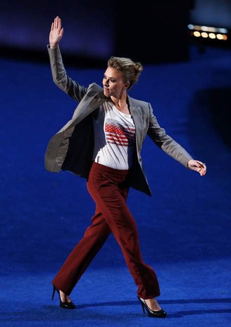 I’ve not seen anything from the DNC since MOBAMA Tuesday because TIFF is cockblocking my sh-t. My friend Gab sent me a note last night to say that Eva Longoria wasn’t bad and kept her remarks short. Do you agree? She didn’t mention Scarlett Johansson. How was Scarjo? All I know is that I really liked what she was wearing and of course she’s wearing her hair up because she’s there as a citizen and not as a celebrity.