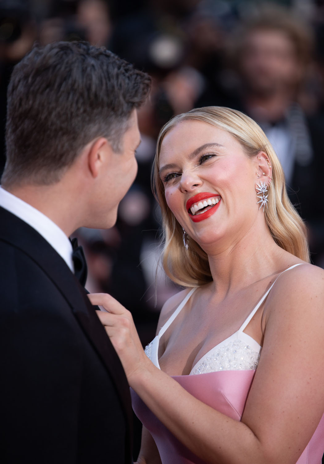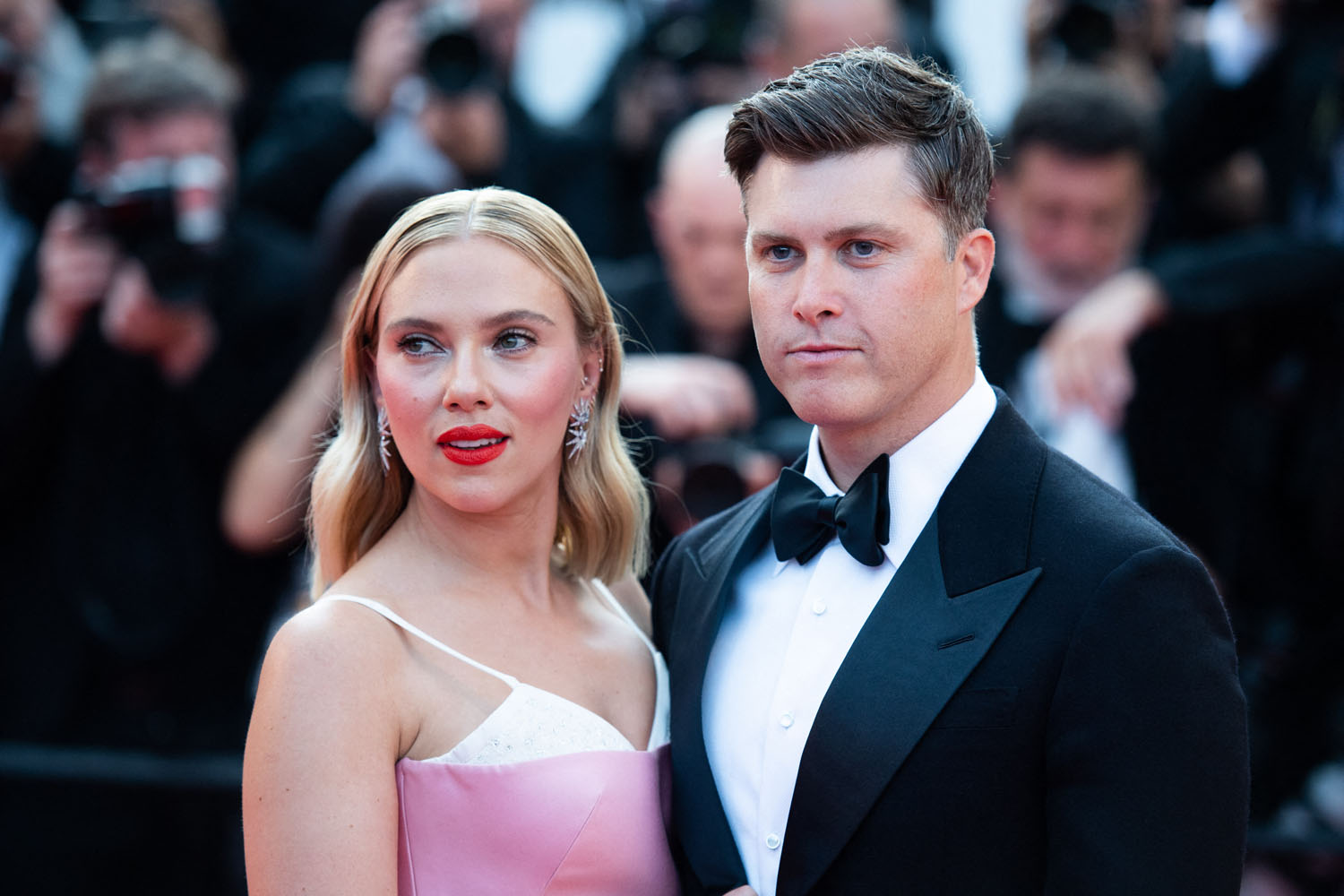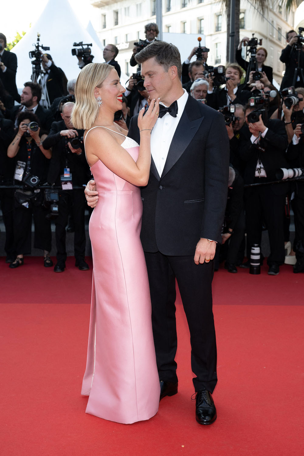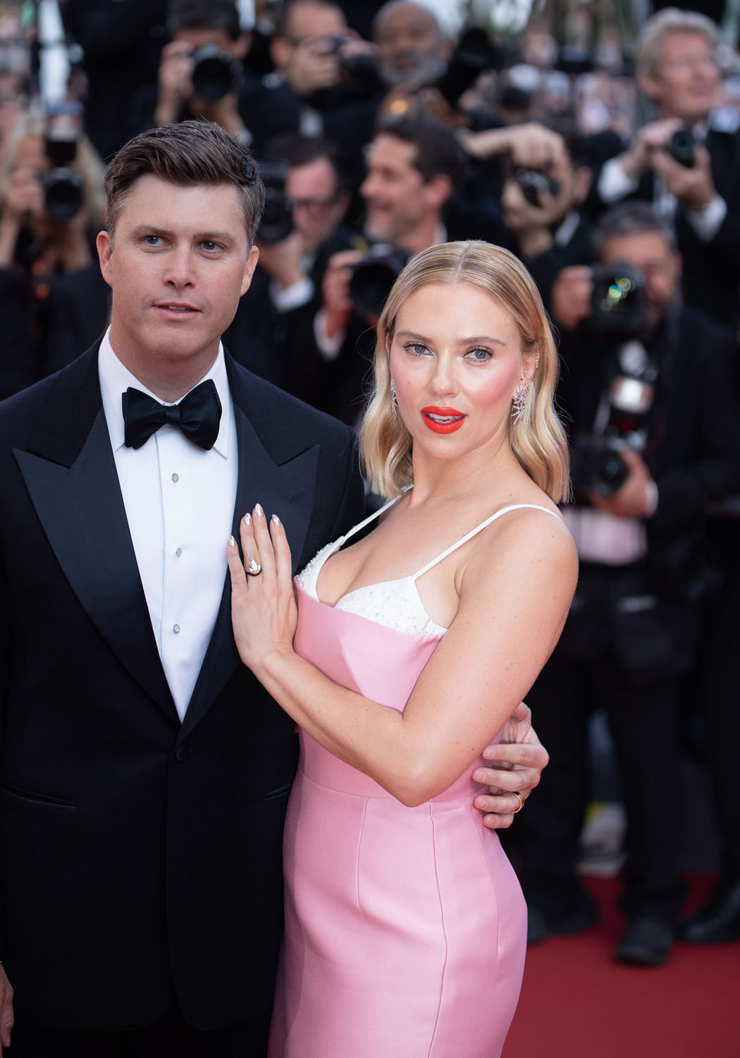 So that’s the kind of energy that Scarlett is bringing into Asteroid City in the lead role and that’s the energy she was serving on the carpet last night with Colin Jost, who’s joined her for the trip since he’s not working because of the writers’ strike. Not surprisingly, given her own lawsuit against Disney, and since she’s married to a writer, she’s with the writers. And she and her writer-husband seemed to dial up the love vibes for the cameras, like they’re doing a Brange cosplay from Cannes back in the day, except Colin could use more practice, lol.