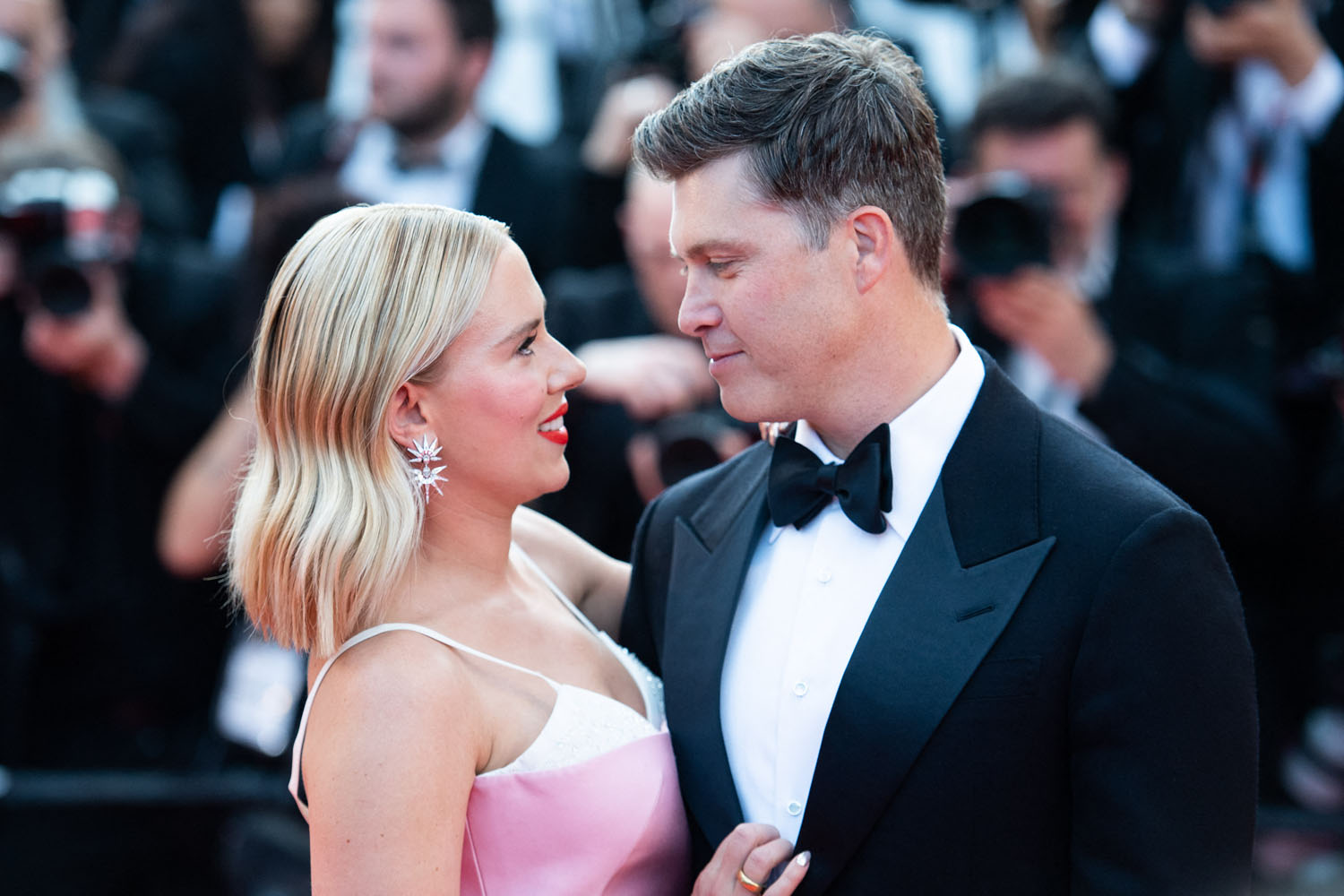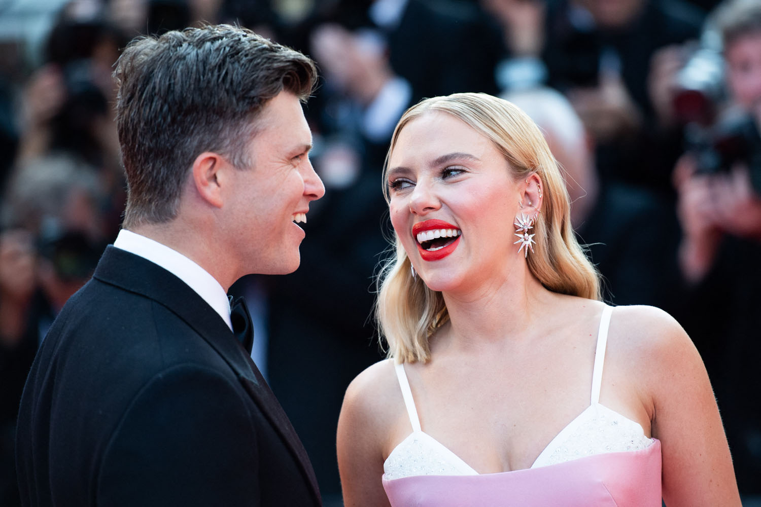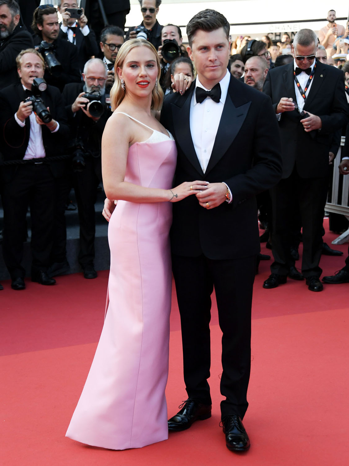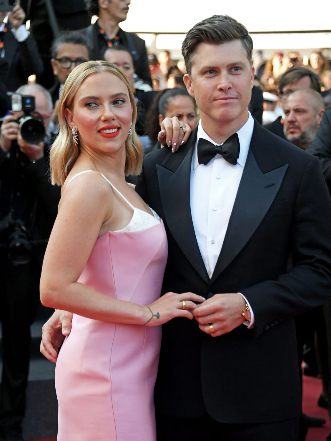 So that’s the kind of energy that Scarlett is bringing into Asteroid City in the lead role and that’s the energy she was serving on the carpet last night with Colin Jost, who’s joined her for the trip since he’s not working because of the writers’ strike. Not surprisingly, given her own lawsuit against Disney, and since she’s married to a writer, she’s with the writers. And she and her writer-husband seemed to dial up the love vibes for the cameras, like they’re doing a Brange cosplay from Cannes back in the day, except Colin could use more practice, lol.