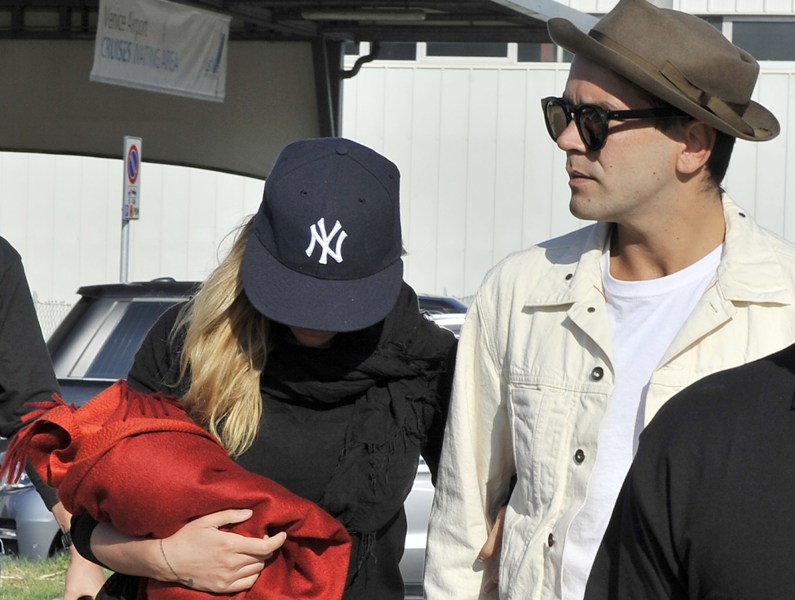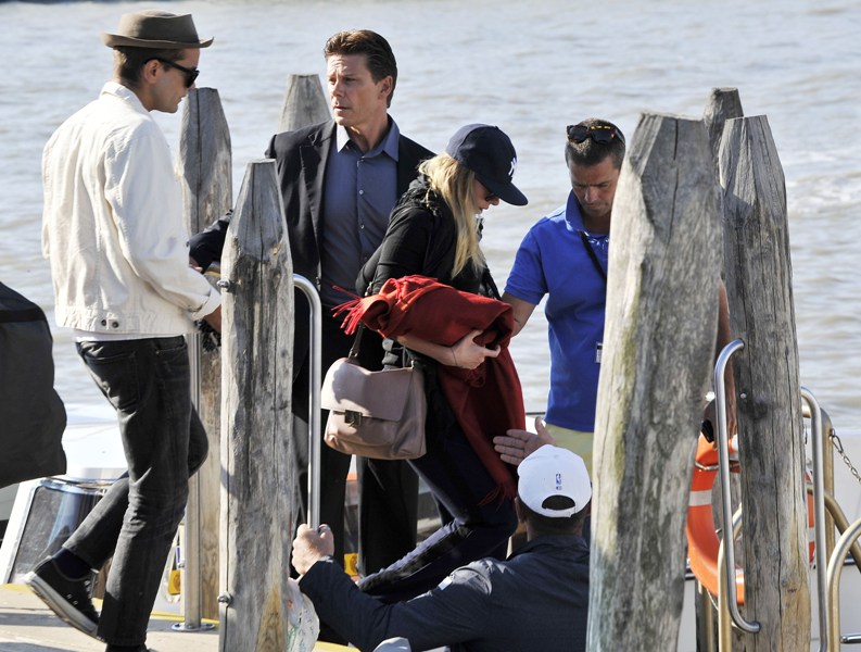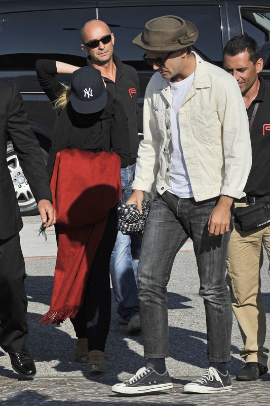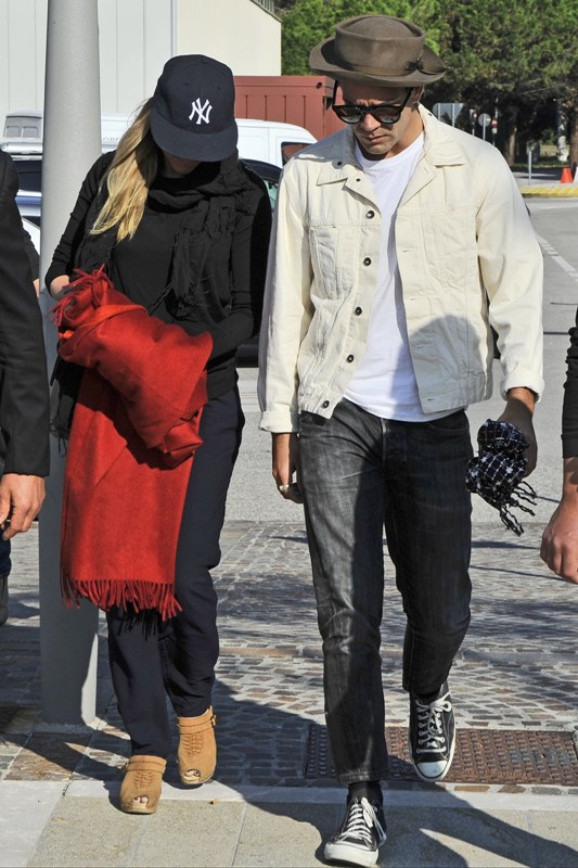 Scarlett Johansson was in Venice today to promote Under The Skin. She arrived at the festival with her boyfriend, Romain Dauriac. They’ve been together now for almost a year. Look at her, wearing the f-cking sh-t out of those pants.