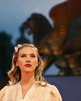 I am in love with her. In. Love. Gorgeous, goth, and punk the other day, old Hollywood glam with aplomb the next time we see her… Who can resist Scarlett Johansson? Certainly not Josh Hartnett and they apparently have a rockin" hard love scene in the Black Dahlia that no one can stop talking about. Must. See. But seriously, can we just focus on this girl for a second? Because it"s not just the looks and the real body and the fact that she"s, like, everywhere these days. To me, what gives her an edge over her peers is the ability to never be boxed. She is more than a teen scream, she is more than a bombshell, she can act (wonder of all wonders), she has a certain style that is all her own, and when your signature is versality, it means we stay interested. You hear that Lilo? As for this dress - many people are panning it. Too frumpy, too old school, too granny, and on and on and on. Me? I am all over this package y"all. She"s Harlow, she"s Dietrich, she"s Doris Day, she"s Garbo, she"s Vogue - let your body move to the music, let your body go with the flow. Oh and he doesn"t look too shabby either. Really, really handsome actually. Except for the brows. Those brows are killin" me. Photos from Gossip Rocks