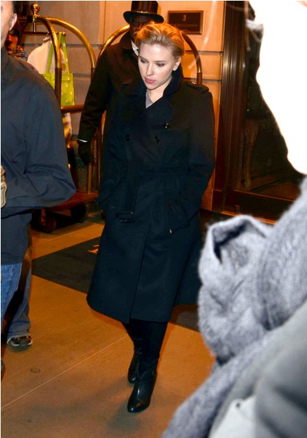 Scarlett Johansson had a crusty face on in New York last night, presumably in town to begin a round of publicity for the upcoming We Bought a Zoo opening on December 23. Scarjo is never great with paps, unless of course she’s going out of her way to be great with paps when she knows she has to sell it (funny how that is, non?), but right now I wonder if it’s more than just the paps; right now I Photo Assume that it’s also a lot of Blake Lively.