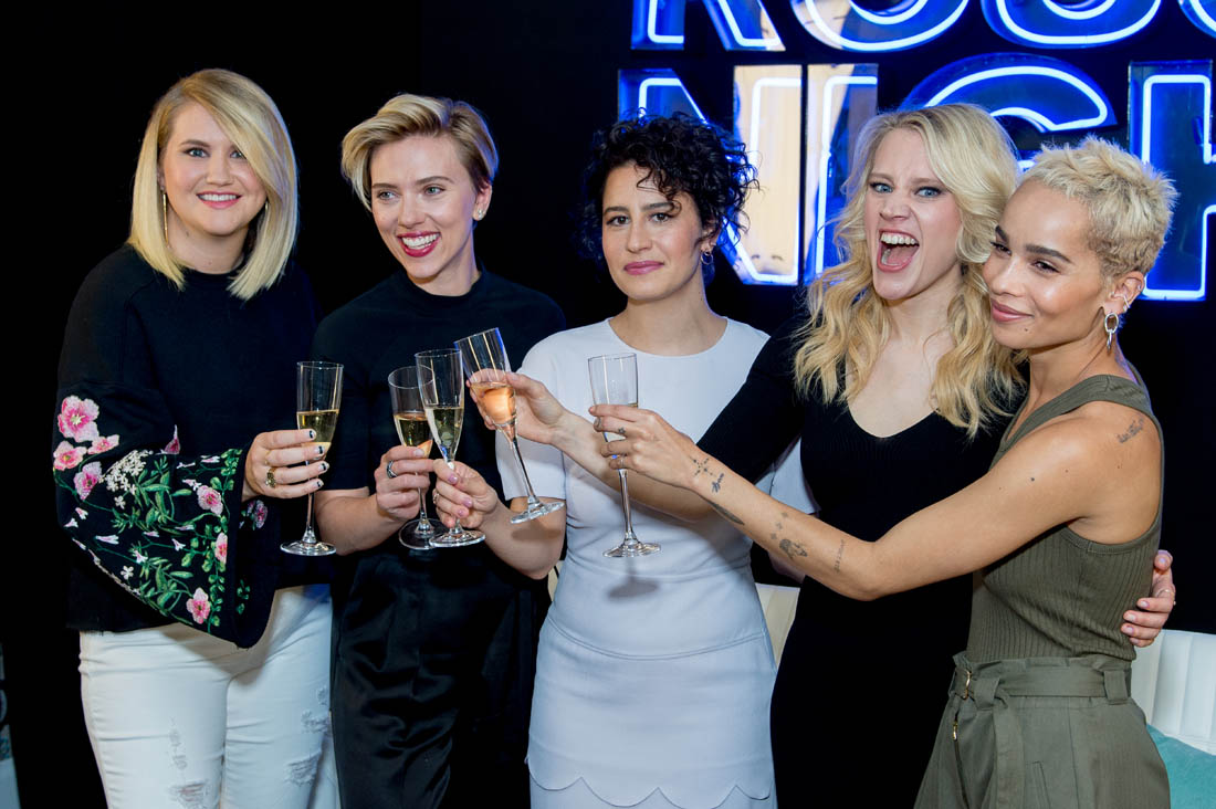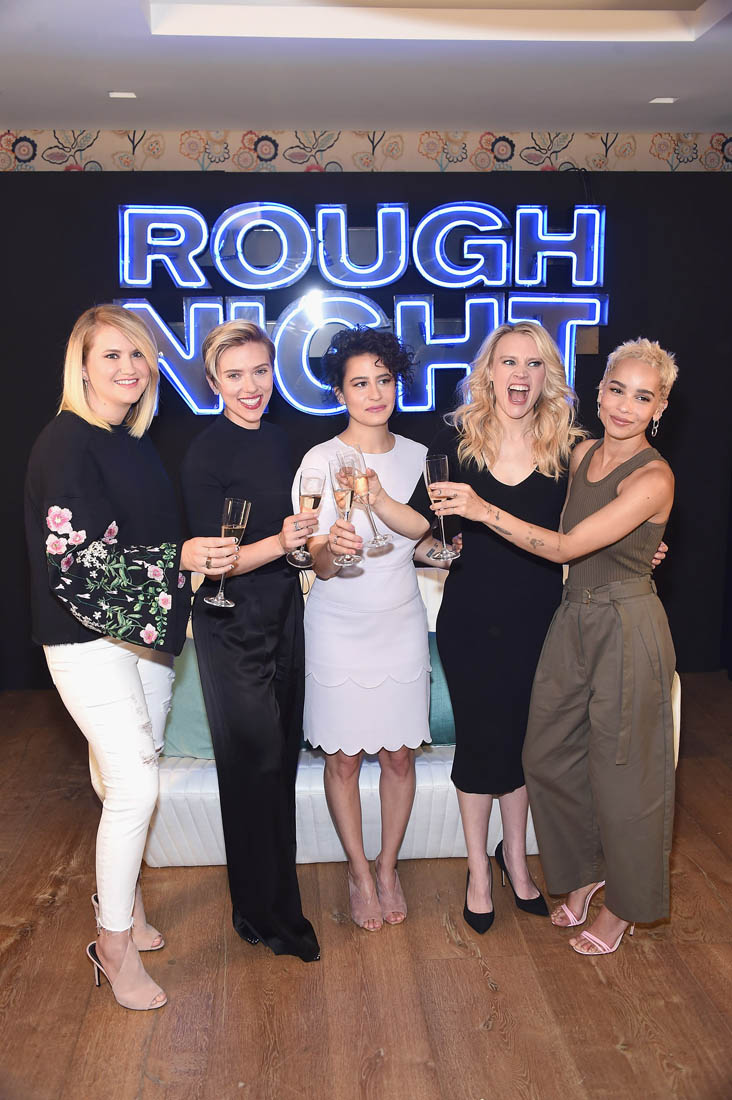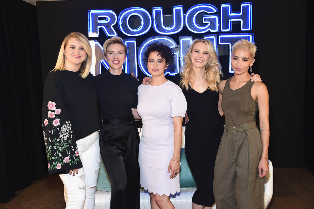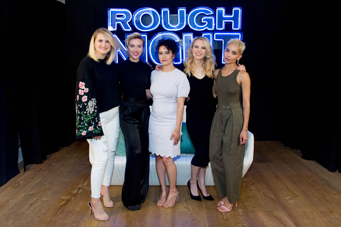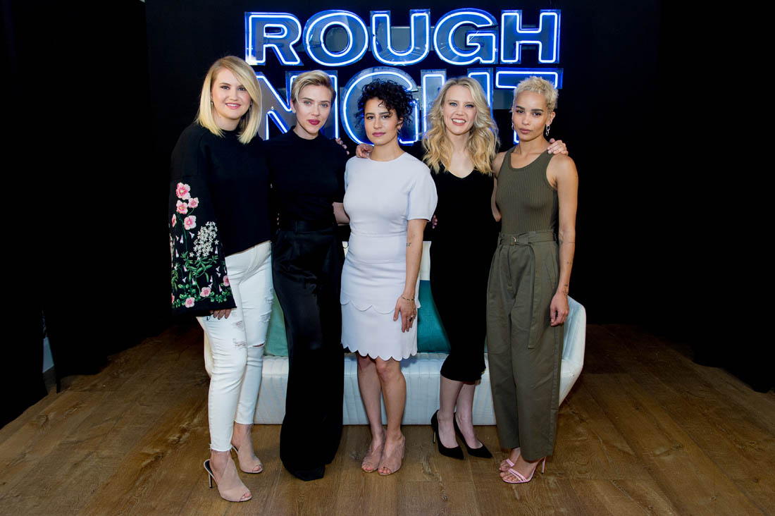 Scarlett Johansson was the first presenter last night at the Tony Awards, introduced as a Tony winner. She won in 2010 for Best Featured Actress in a Play for her work in A View From The Bridge. She is part of the Broadway community then. But she is also promoting a new movie. Rough Night comes out this Friday. She was at a photo call for the movie with Kate McKinnon, Jillian Bell, Zoe Kravitz, and Ilana Glazer on Saturday. It’s an ensemble cast, but of course, the biggest name here is Scarjo. And this is Scarjo’s first movie since Ghost In The Shell.