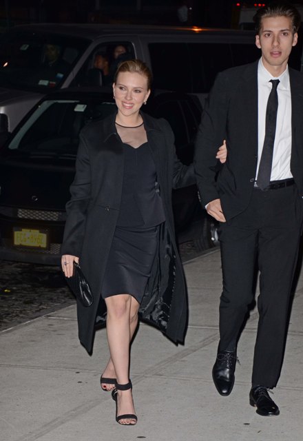 There was an Obama fundraiser last night in New York with all kinds of fashion people. Scarlett Johansson attended with her brother and not her “most beautiful” boyfriend who wears douchebag baseball caps. The event was hosted by Vogue which is why the style question came up, specifically in relation to the surging Rick Santorum’s sweater vests. Here’s how Scarjo grades Santorum’s signature wardrobe selection: