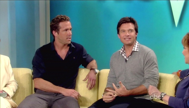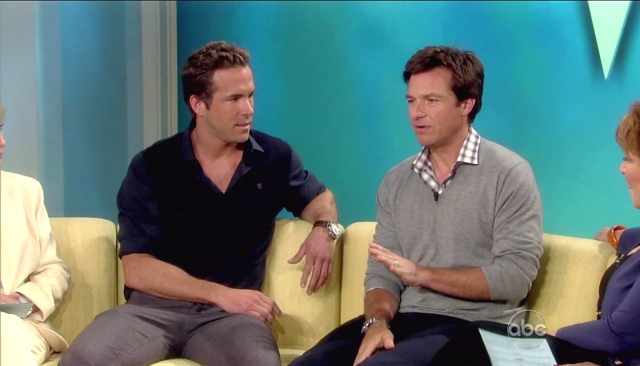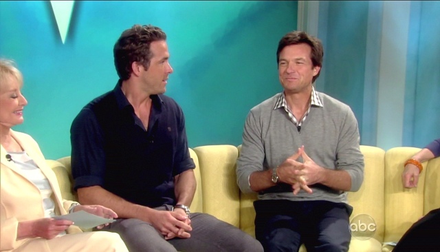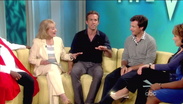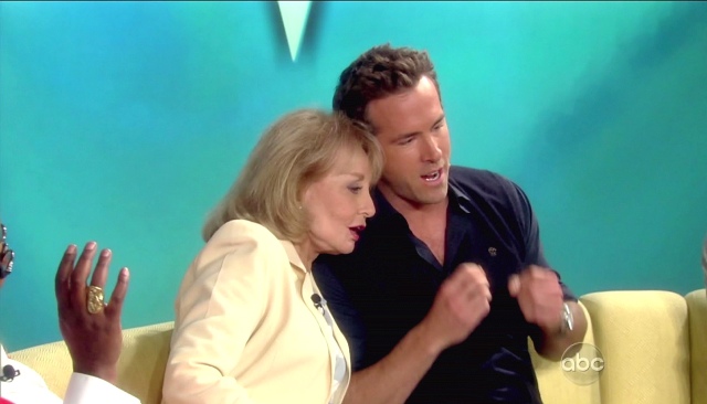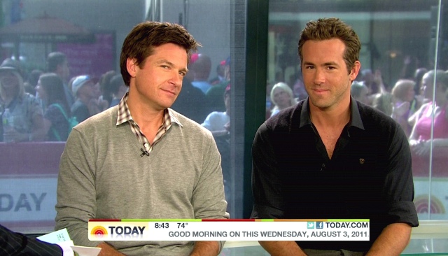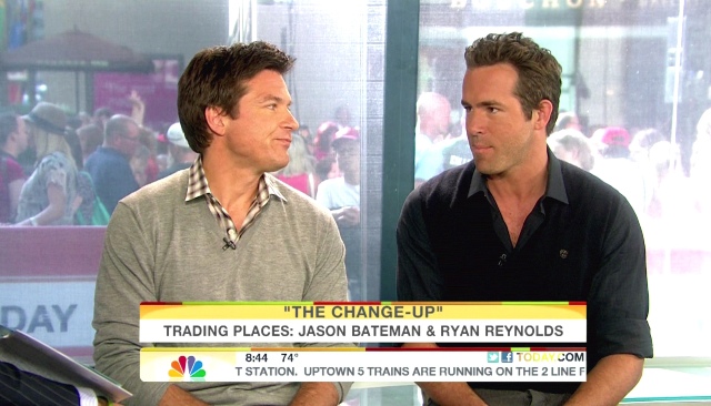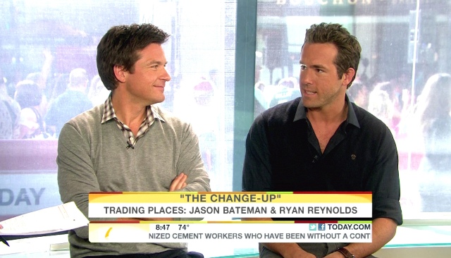 All this of course just as Ryan is back in theatres with Jason Bateman this weekend in The Change-up. The reviews are terrible. And it’s going up against Rise of the Planet of the Apes which is, surprisingly, getting really good reviews. Have you seen the promo below though? I can’t help it. They’re really cute together. I like it when they take a shot at the competition. And of course when they talk about grandma. Just me or is Ryan is really, really tanned in that white suit?