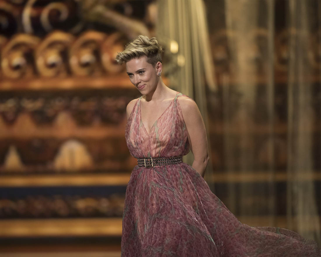 Major disappointment. She’s Scarlett Johansson. I can’t understand how this dress ended up being presented to Scarlett Johansson. I would be embarrassed to bring this over to Scarjo’s. Because this is lazy. Like the dress is actually lazy. The dress does not want to do anything. It doesn’t want to attract you with colour. It doesn’t want to make a case for its construction. It doesn’t ask you to appreciate the material. It has no skills. All it can do is hang on her and be useless.