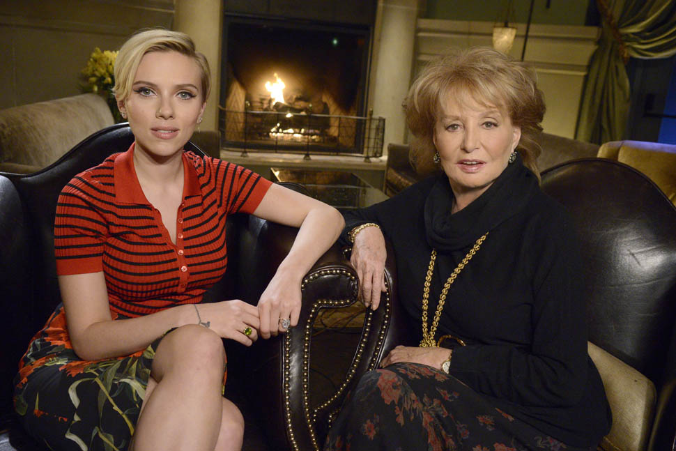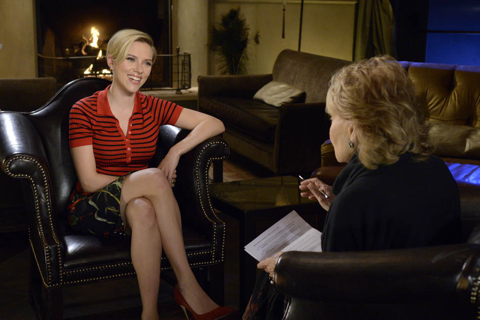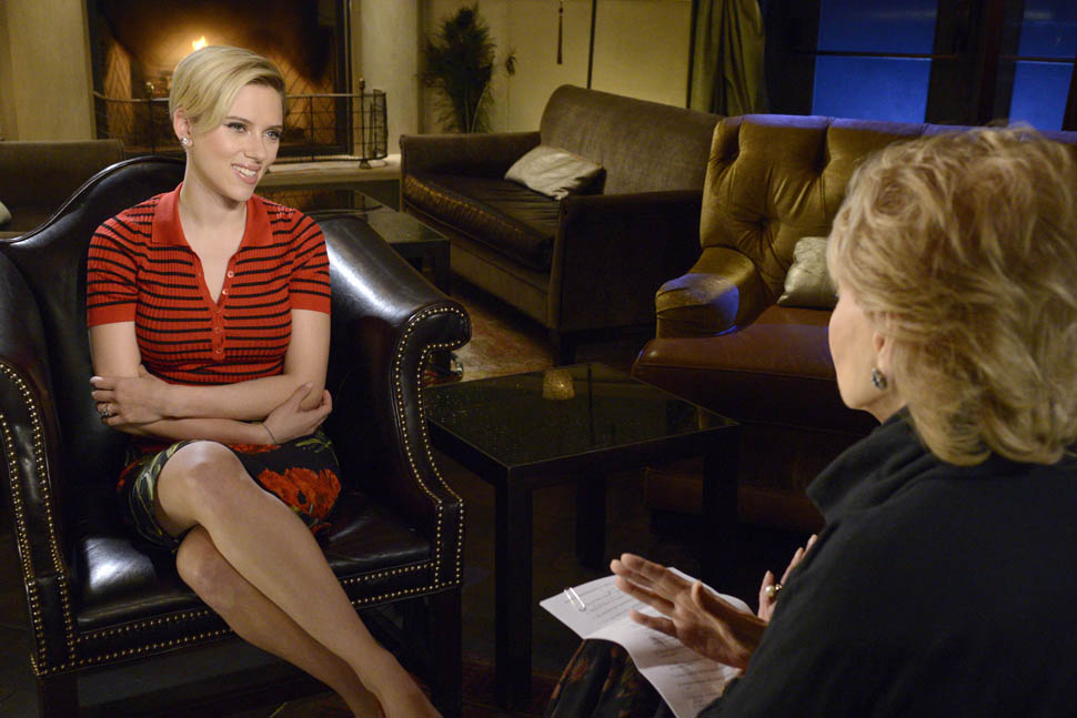 It was announced a while back that Scarlett Johansson made Barbara Walters’s list of 10 Most Fascinating People of 2014. I’ve attached a few photos from the interview. And it’s expected, because it’s Barbara, that she’ll go there. She’ll ask about the baby. She’ll ask about the relationship. Maria posted yesterday that Scarlett and Romain Dauriac were secretly married. Page Six was the first to report it. PEOPLE then confirmed that it happened October 1 in Montana. That’s two months she was able to lock it down.