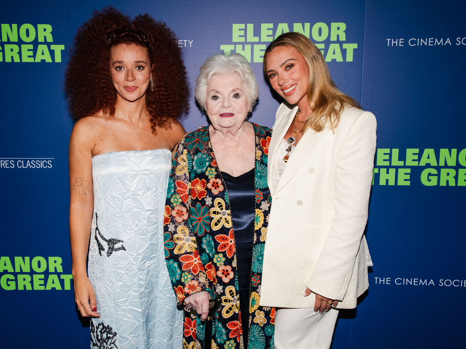 Attached - The cast of Eleanor The Great at the premiere in New York the other day and ScarJo at 92Y last night for a Q&A.