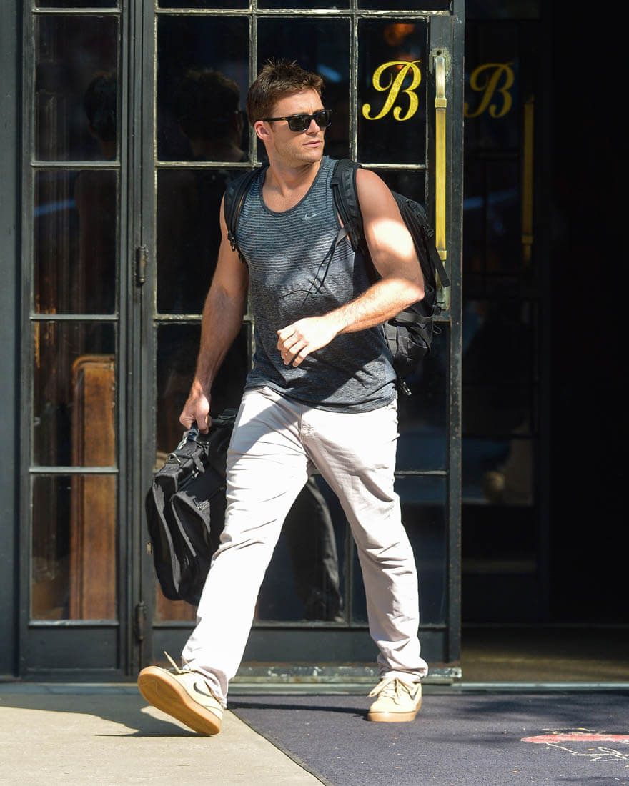 The last time we caught up with Scott Eastwood he was narcing on other actors, in front of his dad, like the principal’s tattle-tale son, for staying in their trailers all day instead of hanging out on set and learning. And yet, in spite of all that, his father has yet to cast him in a leading role in any of his movies. Clint Eastwood has made a movie with Justin Timberlake in the lead…over his own son. Think about that. Does it make you feel sad and sorry for Scott Eastwood? Just wait, because he’s about to ruin it.