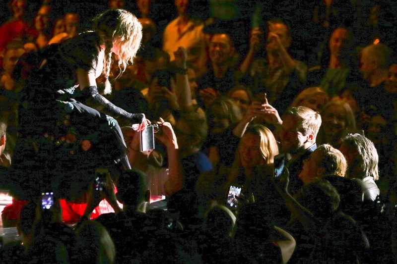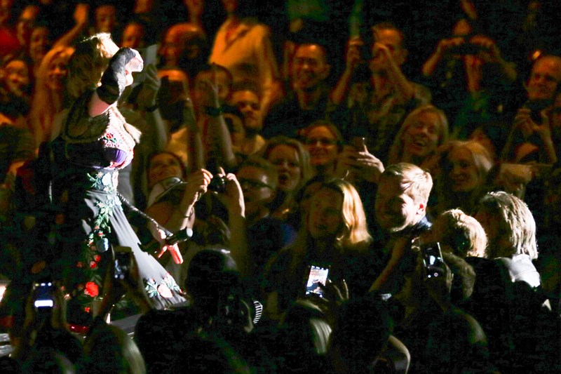 Madonna’s Rebel Heart tour stopped in Vancouver last night. She has a runway coming out of the stage and at the end of the runway is a heart. The point of the heart sticks out into the audience and that’s typically the VIP section. Lourdes was there at the Detroit show. In Vancouver, the VIPs were Amy Schumer and Sean Penn. They ended up on the big screen together.