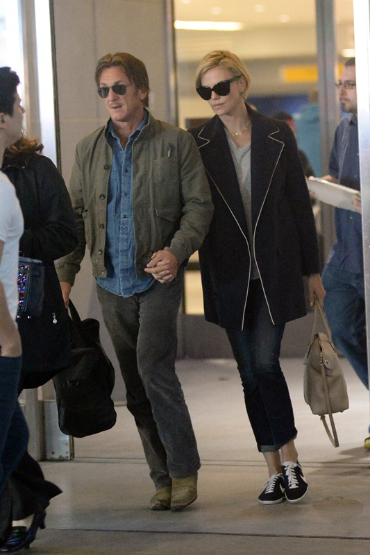 Charlize Theron and Sean Penn arrived hand in hand in New York yesterday. And I repeat, I REPEAT, these two are still f-cking up my sh-t.