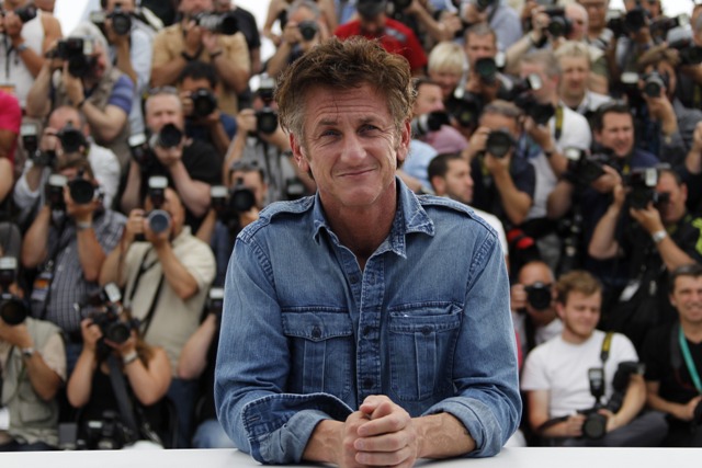 You know, he doesn’t seem to be missing her a whole lot while he’s been here. Penn parties HARD when in Cannes. While he was still married to Robin Wright, he would roll up to the club with a lady on each arm at like 4am. And that was the year he was the Jury President. Last night Sean hit up AMFAR and was in really, really great spirits. Like actually smiling with photographers around. And being introduced to a lot of models and rich Euros and their wives/mistresses.