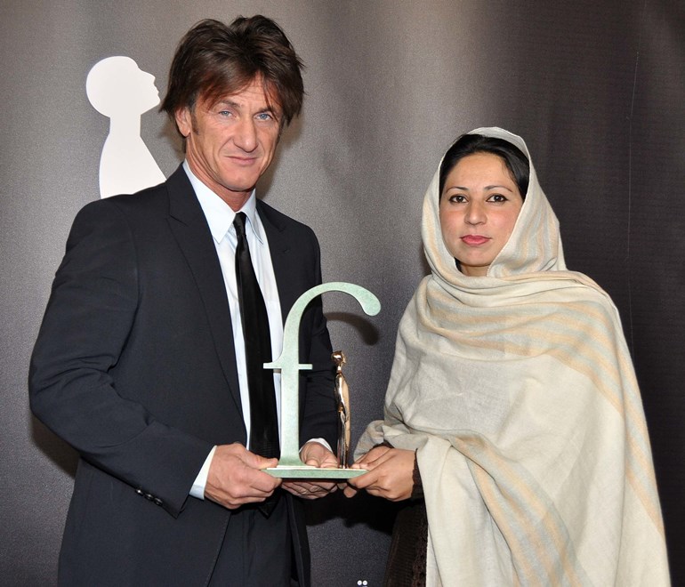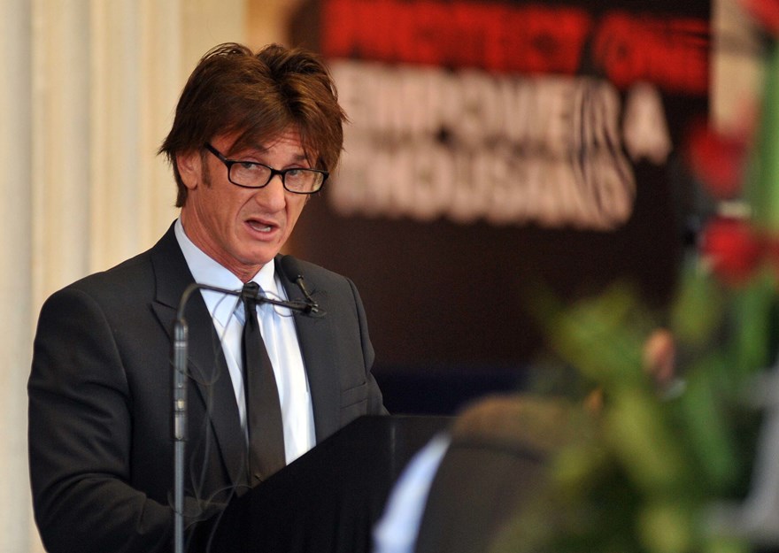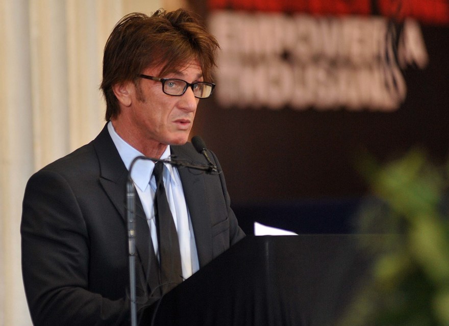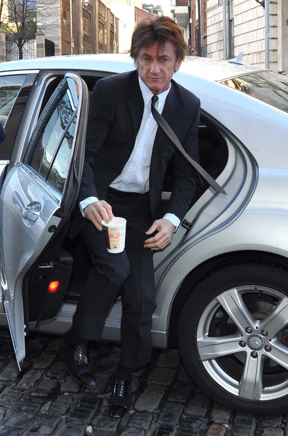 Penn was in Dublin today at the 2014 Frontline Defenders Award Ceremony where he presented an award. As you can see, his hair is something special right now. Long and thick and floppy. If I were him, I’d be careful in his sleep. Because John Travolta might sneak into his bedroom at night and cut it off.
