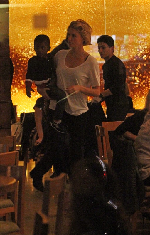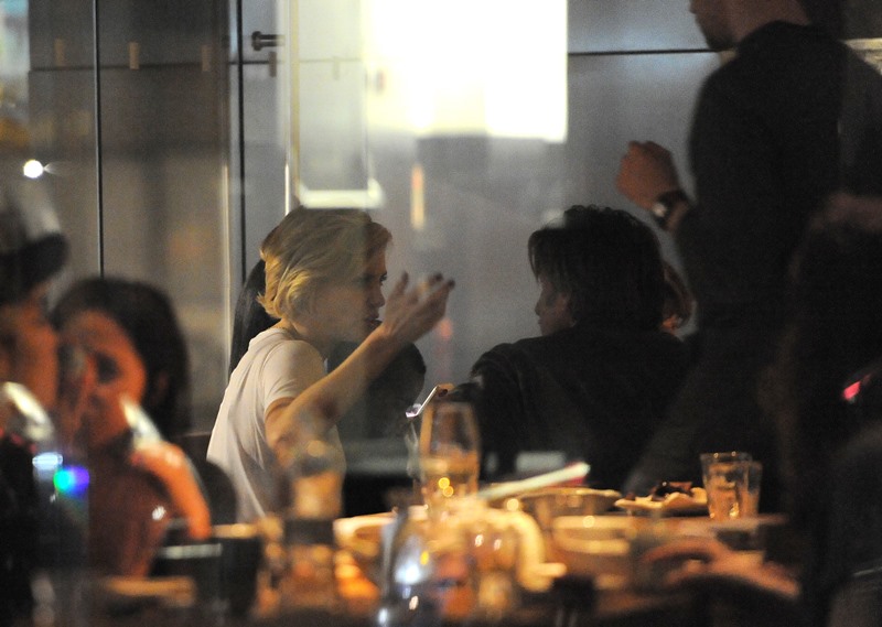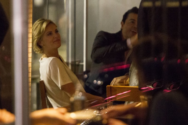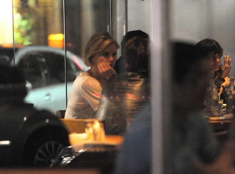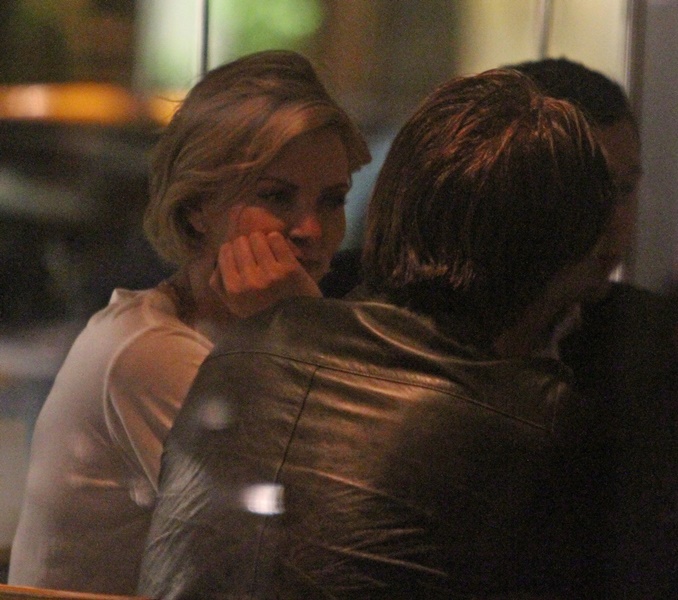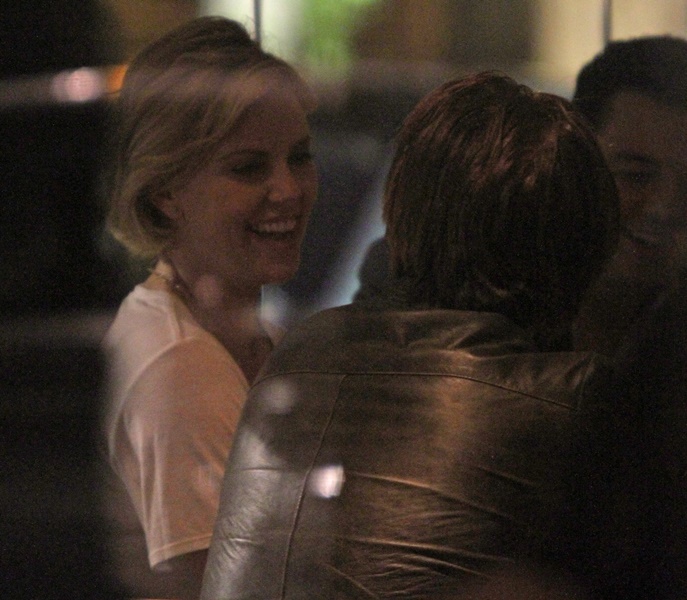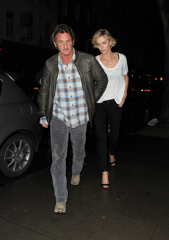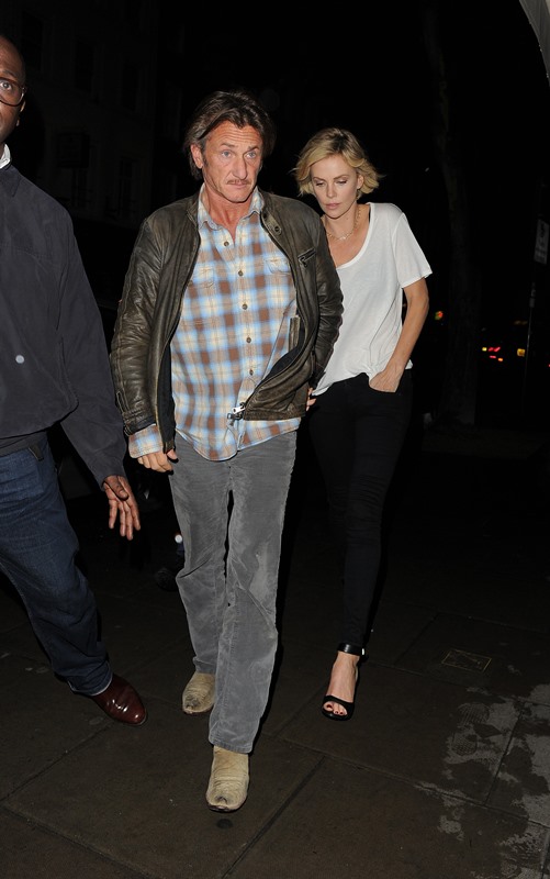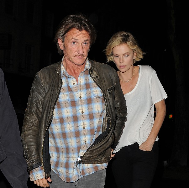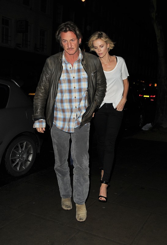 Charlize Theron is currently promoting A Million Ways To Die In The West. Yesterday she was in London. And Sean Penn has come along with her on the press tour. They went out for dinner holding hands. They embraced inside the restaurant. It was pretty evident that photographers were around.