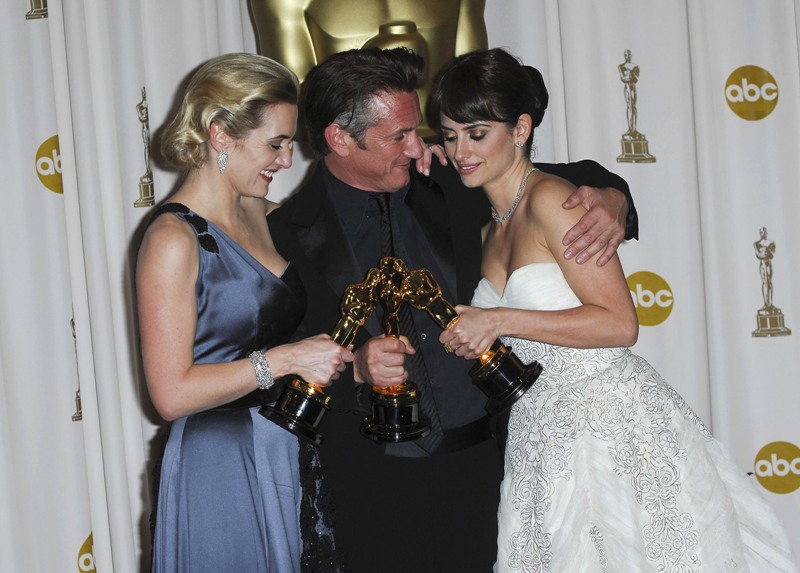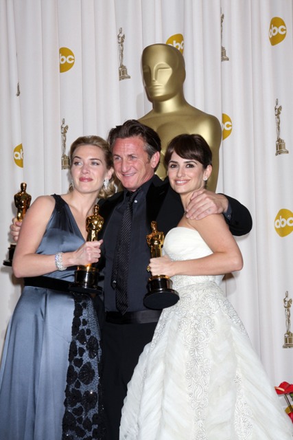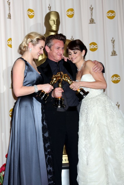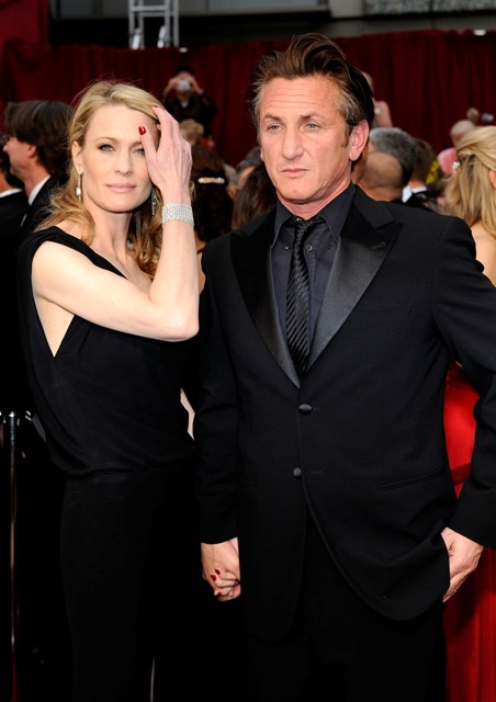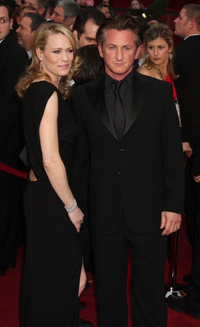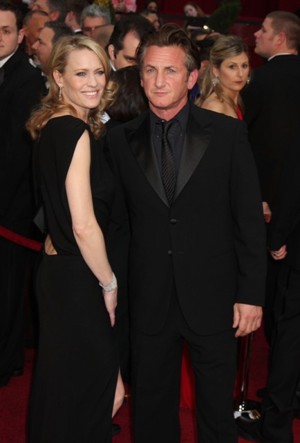 You've been emailing about this today: Sean Penn having no time for his wife Robin Wright despite the fact that she seemed overcome by his win. At one point the Academy featured a really sweet camera angle of him in profile with her face in the background...only he seemed like he could care less.