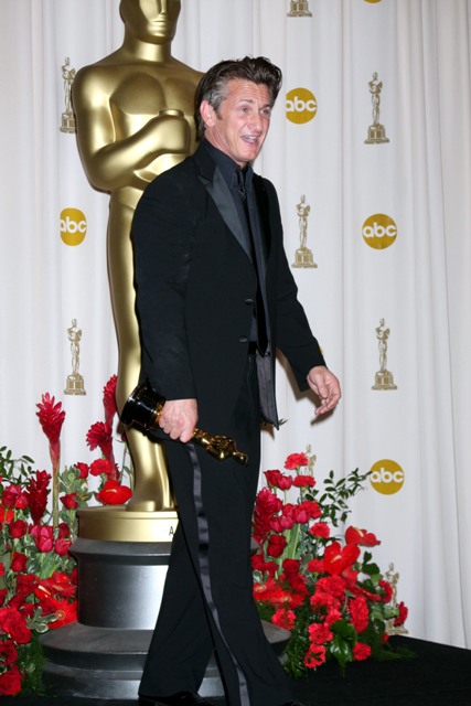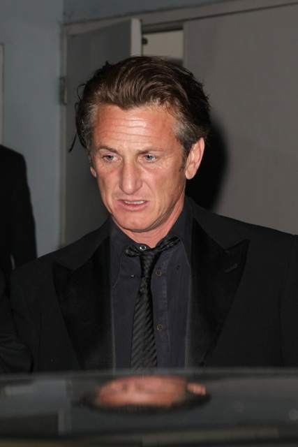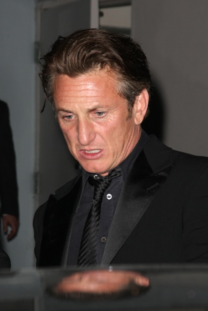 In the press room he was too busy being surly. I am officially afraid of Sean Penn. Please. Don't ask me to ask him what he thinks of Madonna's divorce. I value a great scoop but I'm also going to Vegas in 3 days and I didn't want to f-ck up my trip.