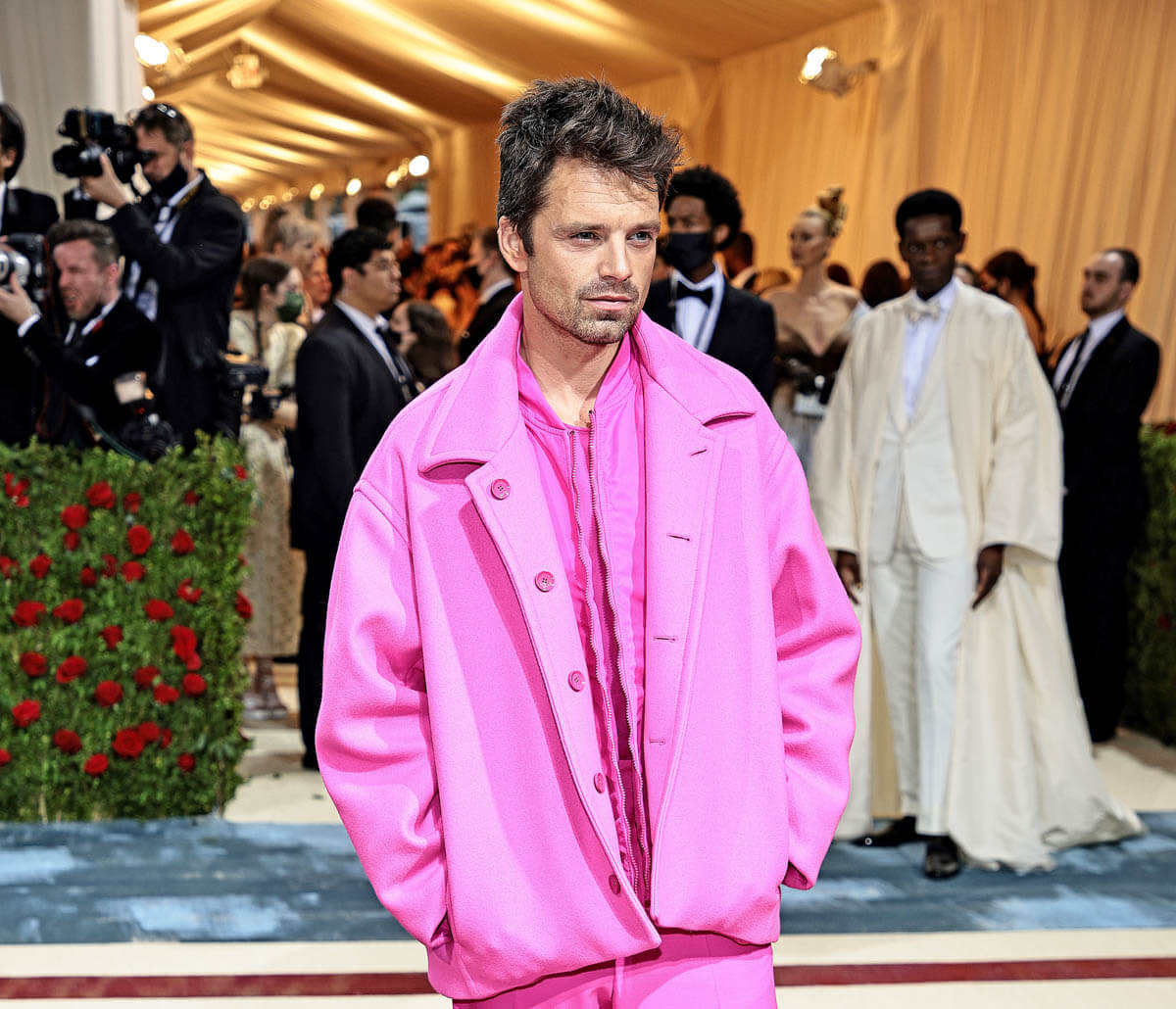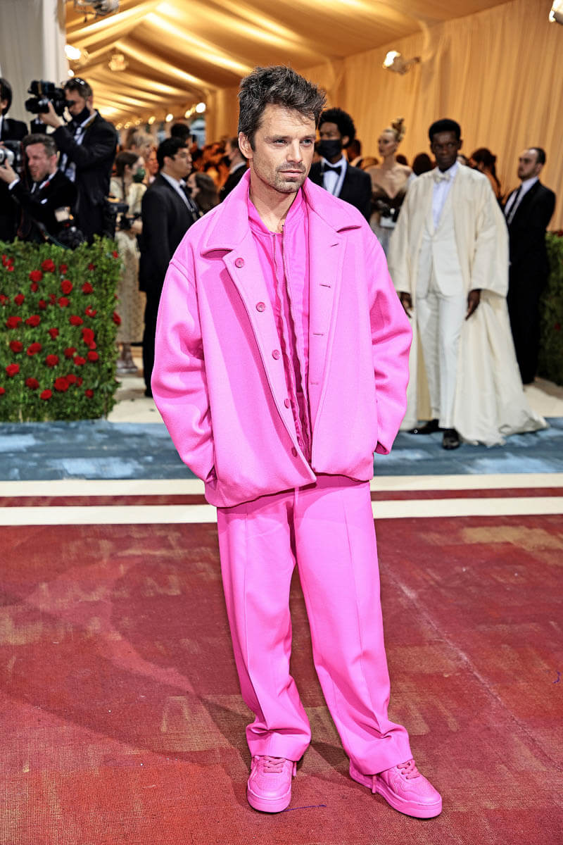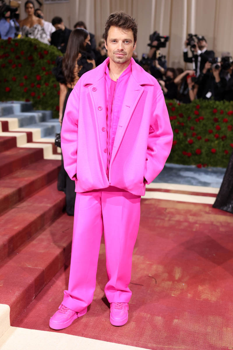 Sebastian Stan also attended the Met Gala, and stop saying he didn’t dress to the theme in head-to-toe PINK (from Valentino), because he ABSOLUTELY did.