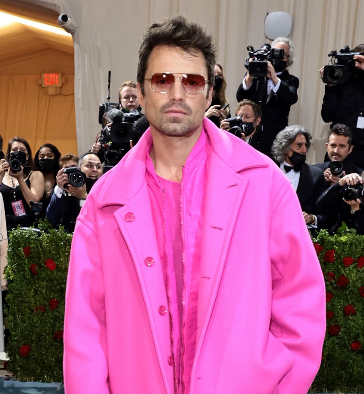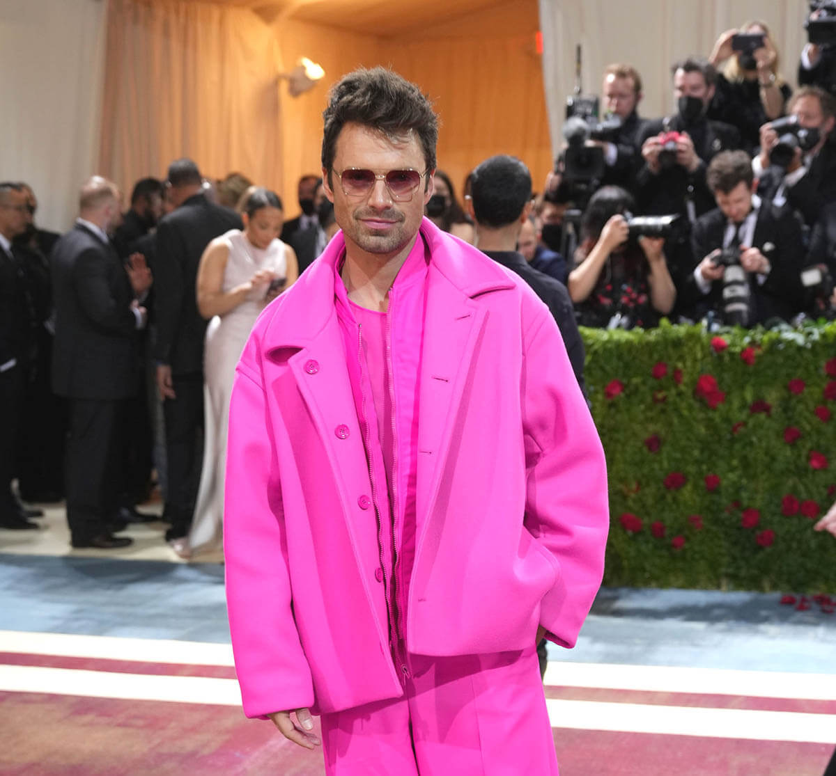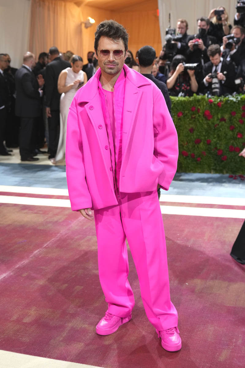 Sebastian Stan also attended the Met Gala, and stop saying he didn’t dress to the theme in head-to-toe PINK (from Valentino), because he ABSOLUTELY did.