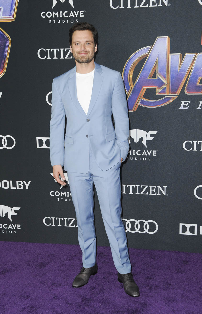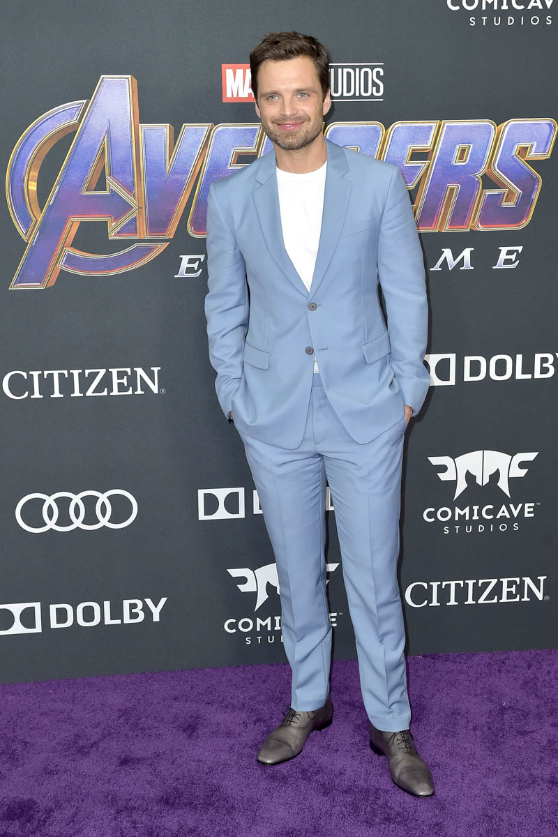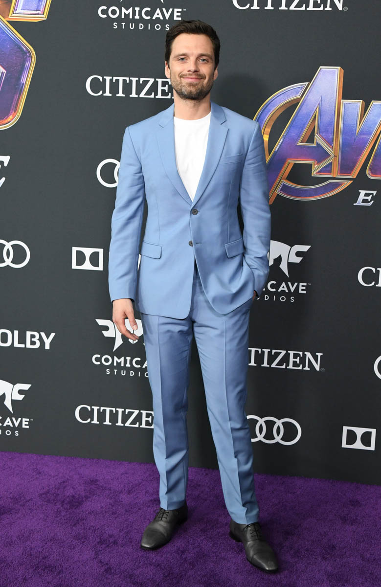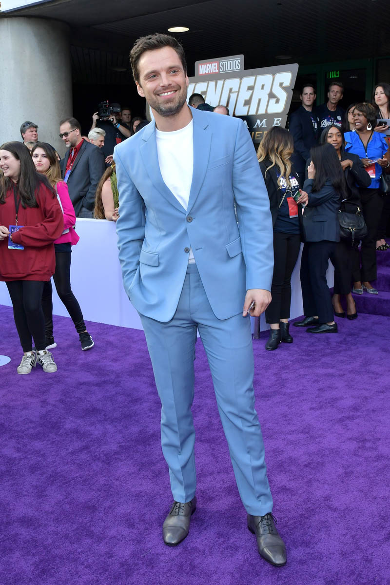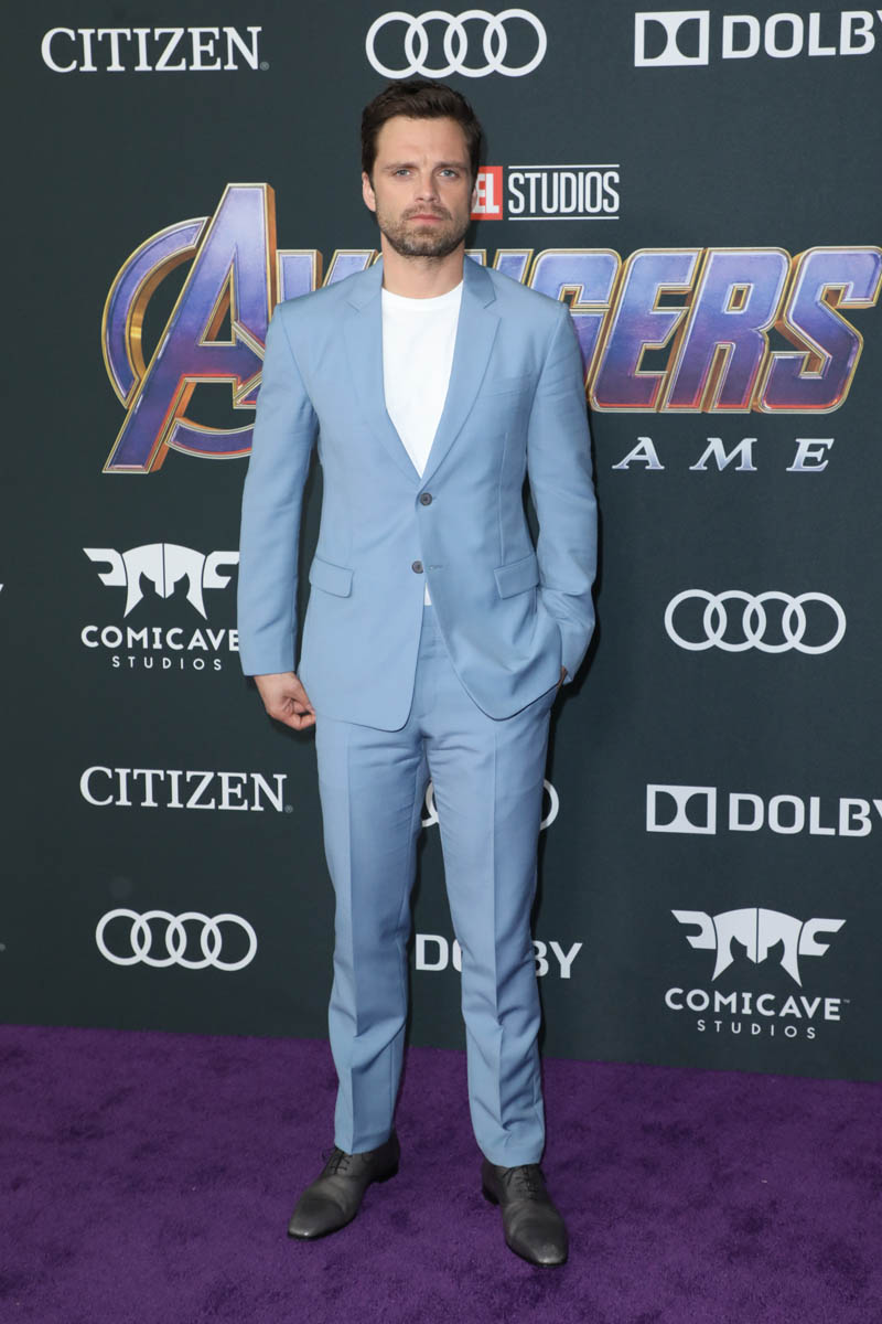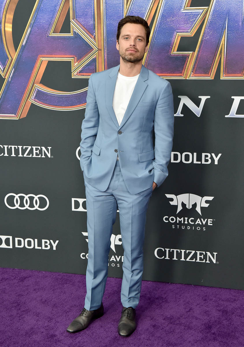 Even though Bucky is, technically, a pile of dust, Sebastian Stan turned up at the Avengers: Endgame premiere. His blue suit is runner up to Taika Waititi’s on my favorite looks of the night roster. The two suits are similar in tone, but Taika’s is definitely lilac, and Stan’s is reading more periwinkle to me. Anyway, I love the indigo hues so last night’s premiere was like a soothing indigo bath for my eyes. Also, I like to look at Sebastian Stan at any time. He is always a welcome sight. Can’t wait for him to come back to life in the movie, I make no secret of my Bucky love. Also, do you think Captain America carefully swept all of the Bucky dust into a jar he keeps on his desk?