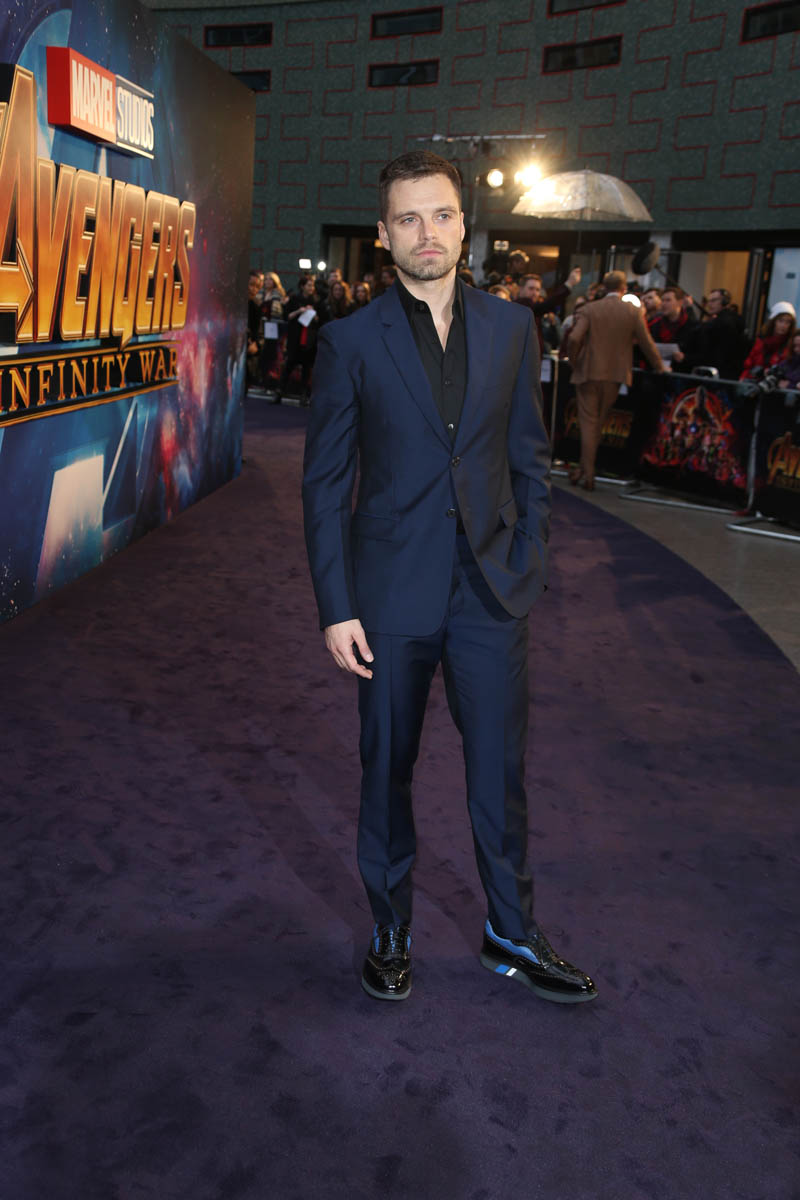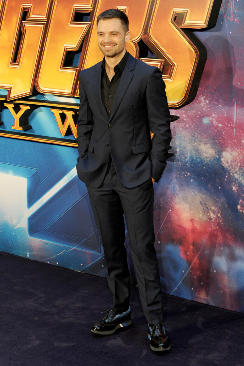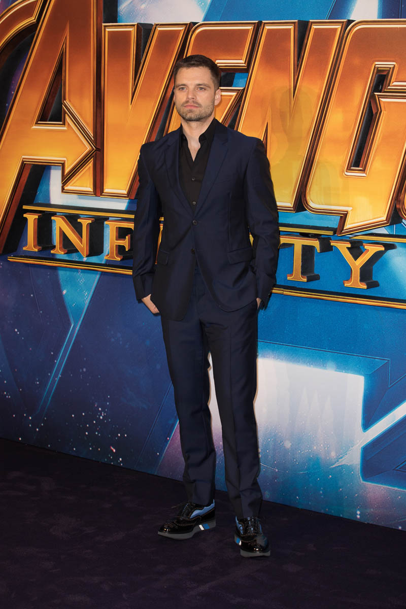 With Chris Evans currently on Broadway, Sebastian Stan is picking up the slack on the promotional trail. The Marvel machine is rolling, as we’ve seen Chris Pratt already doing press overseas, and now Stan has joined several of his castmates for an event in London. Lainey is right—he looks GOOD with the short hair (also, welcome to the Sebastian Stan Train, Lainey!). He joined an assorted kettle of British Avengers—points awarded to Tom Holland for being the only dude to wear a tie. But also points awarded to Stan for working the tie-less open collar better than everyone else. And a special ribbon goes to Paul Bettany for his commitment to wearing sunglasses inside. In a stare-off, I wonder who would keep their sunglasses on inside longer: Bettany or RDJ? Honorable mention to Benedict Cumberbatch for showing up, I guess. He looks like he always looks at these things.