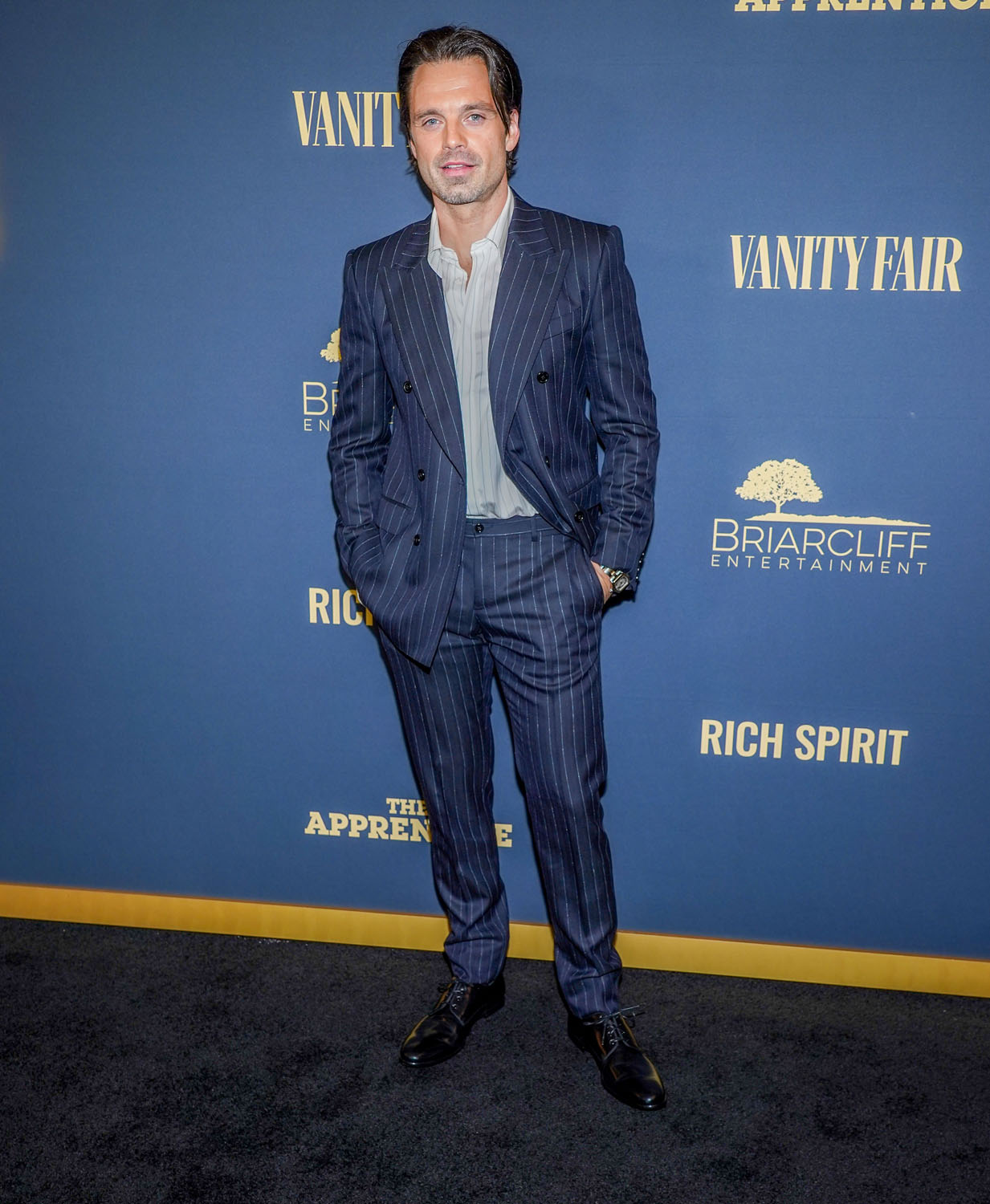 Here is Sebastian, the week of the release of his most controversial film to date, and as Lainey previously noted, he is looking very good right now. As he should, he’s riding a professional high, with the best reviews of his career for both The Apprentice and A Different Man. He’s an Oscar contender, and with Joaquin Phoenix pretty much out of contention now, Stan’s odds improve (as they do for everyone on the Best Actor bubble, such as John David Washington and Andrew Garfield).