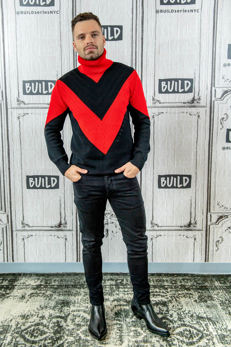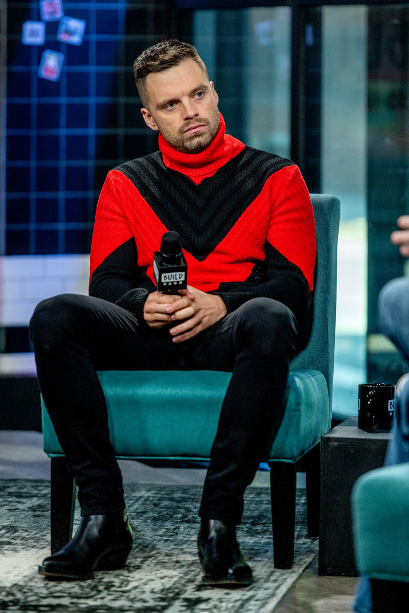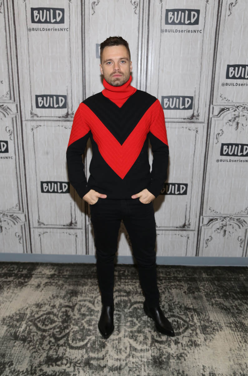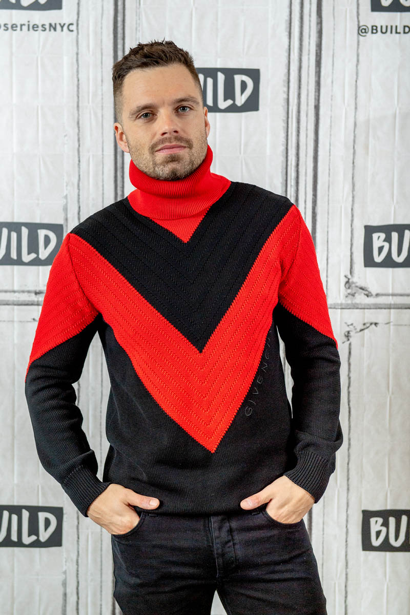 Sebastian Stan has been doing a lot of promotion for Destroyer. He has maybe fifteen minutes in the whole movie, but based on the amount of promotion he’s done, you’d think he was co-leads with Nicole Kidman. I get it—he’s Marvel famous (like internet famous but people only know you from Marvel movies) and draws in a demographic that otherwise might not go see Nicole Kidman play against type in a grimy noir-ish crime thriller. This week he was at the BUILD Series talking up Destroyer while wearing a magnificent sweater. Look at it. It’s a bold graphic print—very fashionable. But it also looks cozy and warm, like something a really hot fisherman might wear in a cologne ad. I don’t know what to call this sweater. Comfort fashion? Cozy couture?