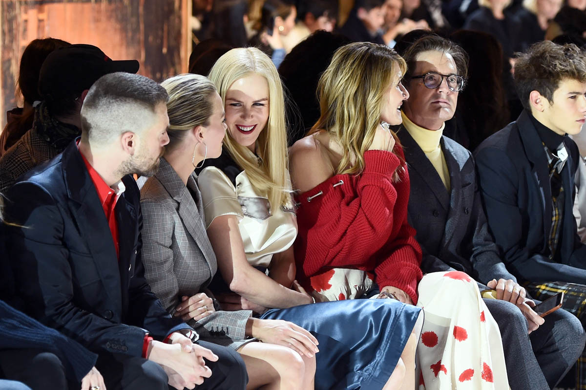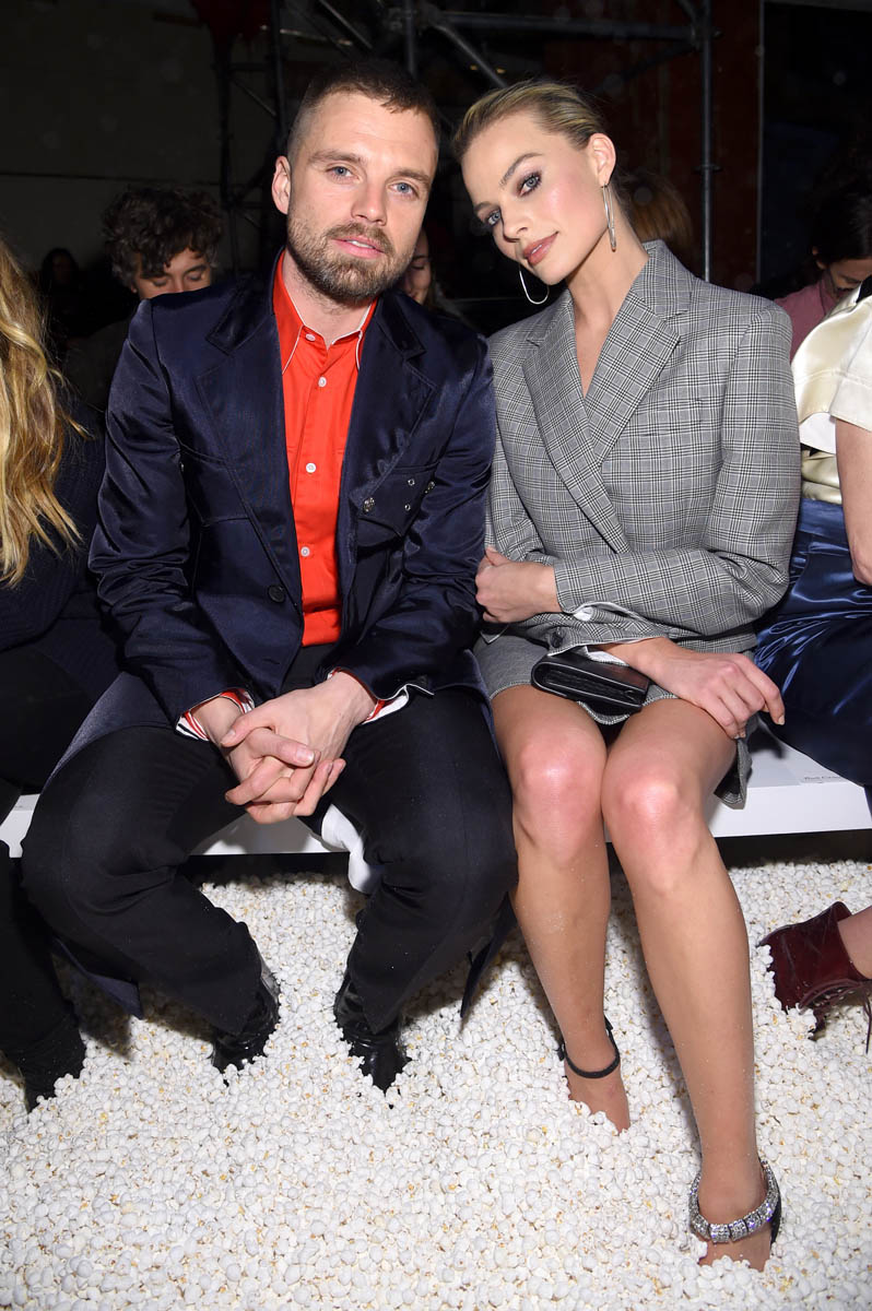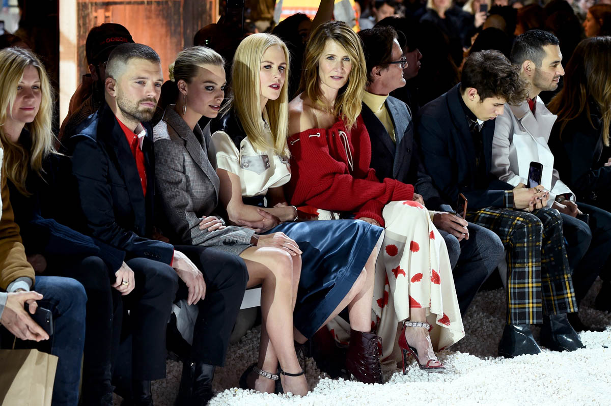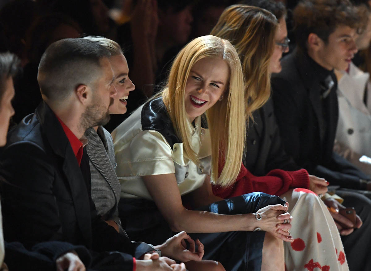 Sebastian Stan sat front row at the Calvin Klein Collection show yesterday. He sat beside his I, Tonya co-star Margot Robbie with Nicole Kidman and Laura Dern on the other side of Margot. There are a couple of photos of Nicole seemingly laughing hysterically at something Sebastian said, and the two look like old pals. I was confused for a second, then remembered that Sebastien and Nicole just worked together on Destroyer. In fact, Sebastien’s new buzz cut was unveiled on Nicole Kidman’s Instagram.