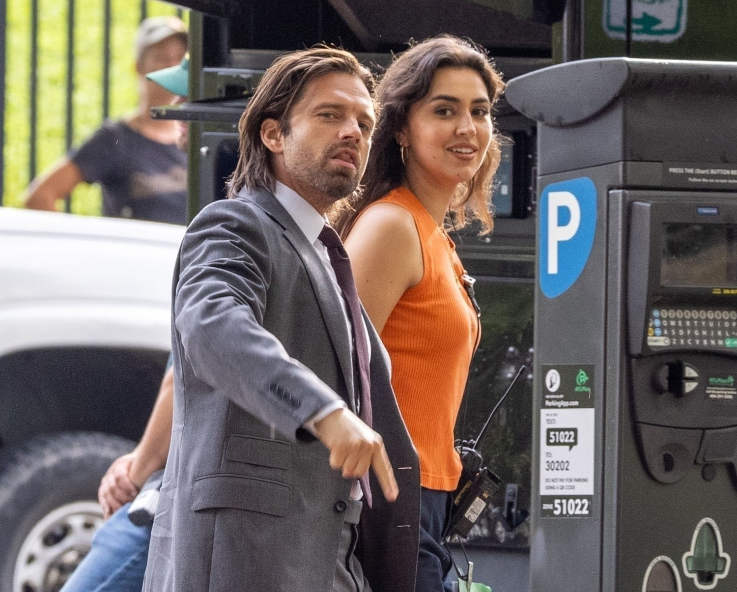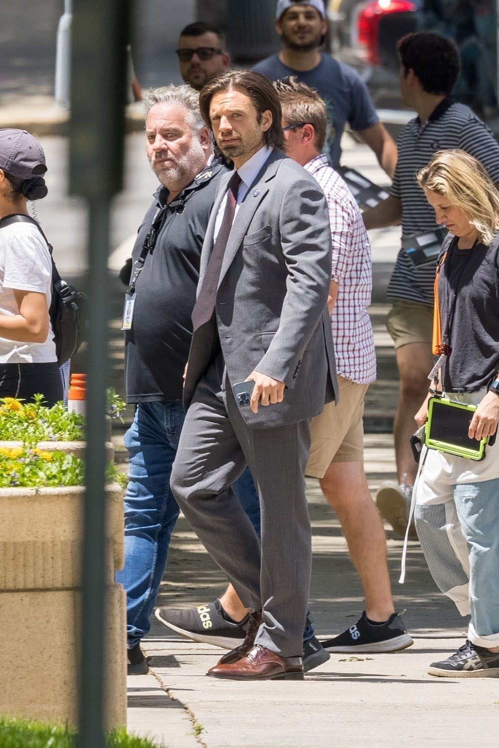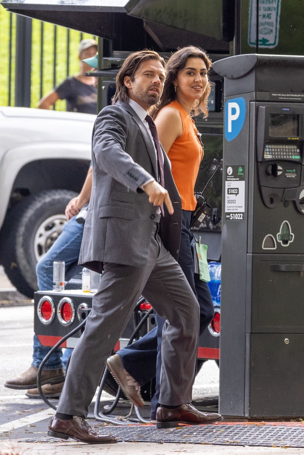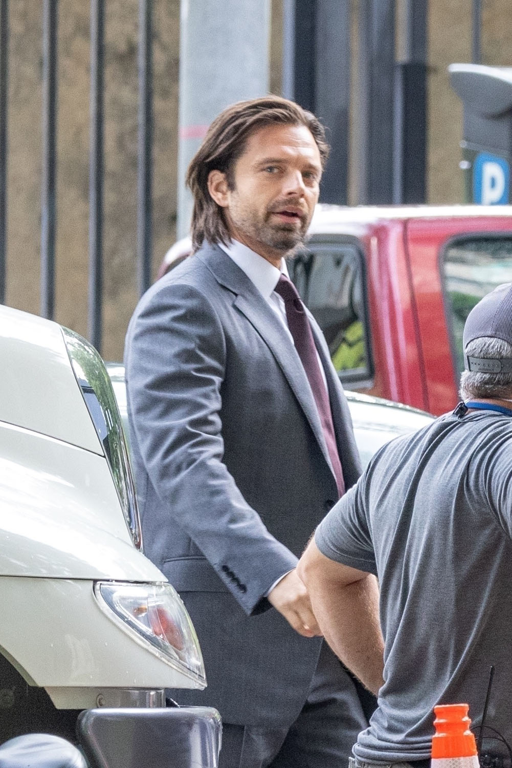 I mentioned that Sebastian Stan’s scumbag era is working for me after the Met Gala, and a LOT of you agreed. So here is Sebastian on the set of Thunderbolts*—the asterisk is part of the official title treatment, learn it, love it, embrace it—sporting a new look for Bucky: a suit. I think the last time we saw Bucky Barnes dressed in a suit was a flashback in, maybe, Captain America: Civil War? It’s not Bucky’s usual look, that’s for sure.