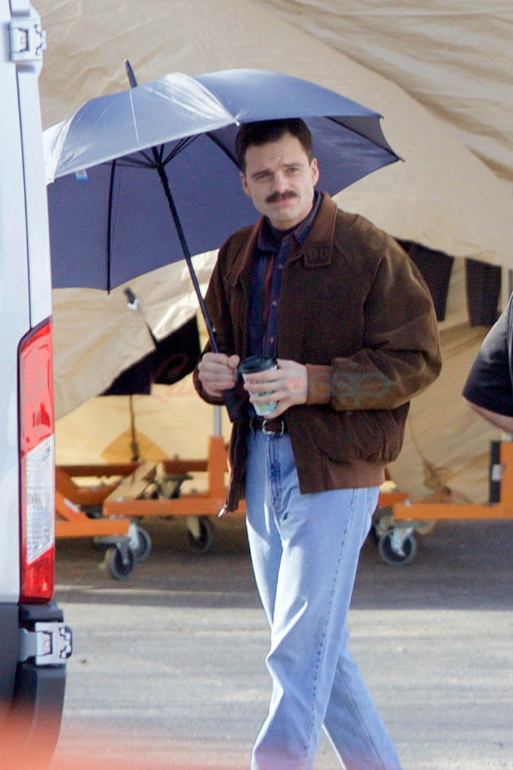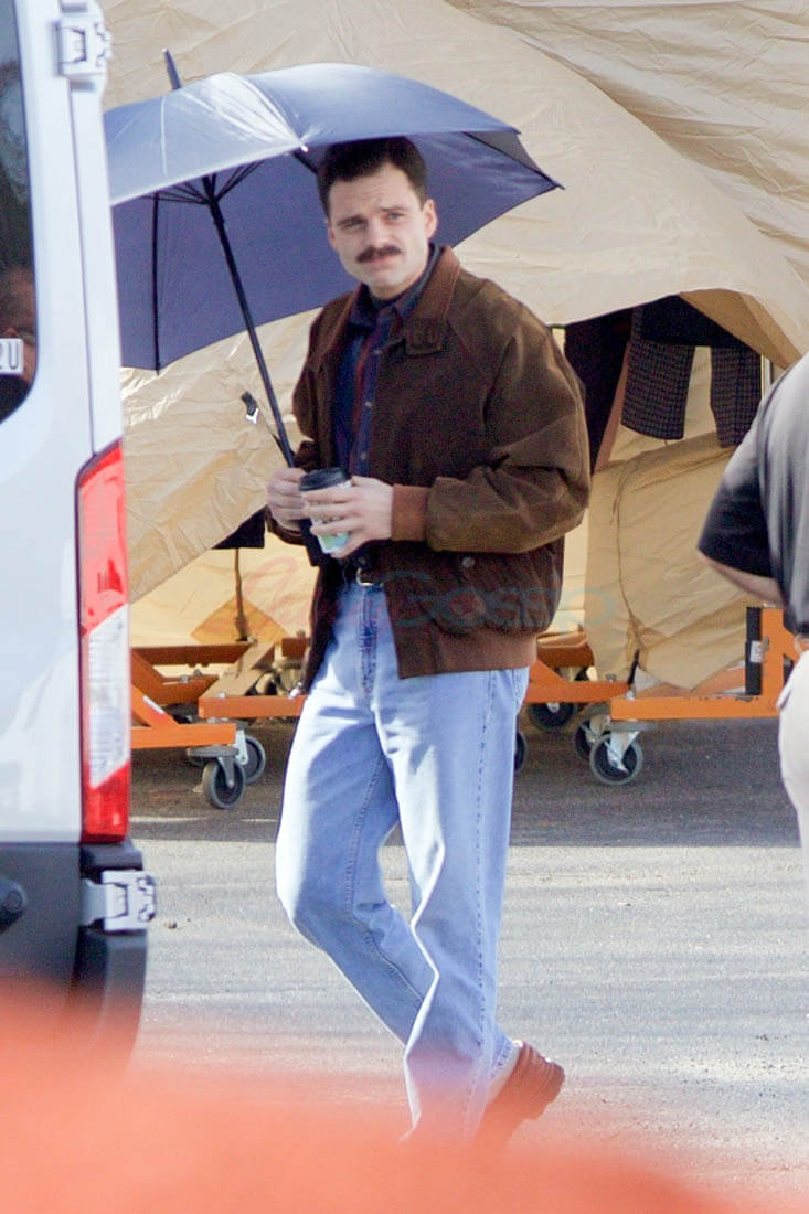 We just saw Margot Robbie in costume as Tonya Harding the other day, and now it’s Sebastian Stan’s turn to show off his Jeff Gillooly look. Spoiler alert: It’s f*cking tragic. It’s so tragic a friend asked me if it was affecting my crush. (No, but this is a trying time, thank you for your support.) We always knew this was going to be a horrendous look for anyone, but you know it’s bad when someone as handsome as Sebastian Stan looks this tragic. The combination of 1990s fashion—HIGH-WAISTED JEANS ARE THE DEVIL—and Gillooly’s truly unfortunate facial hair decisions are doing the most to work against Stan’s handsome. Also, that is a very sad haircut. As in, it makes me very sad.