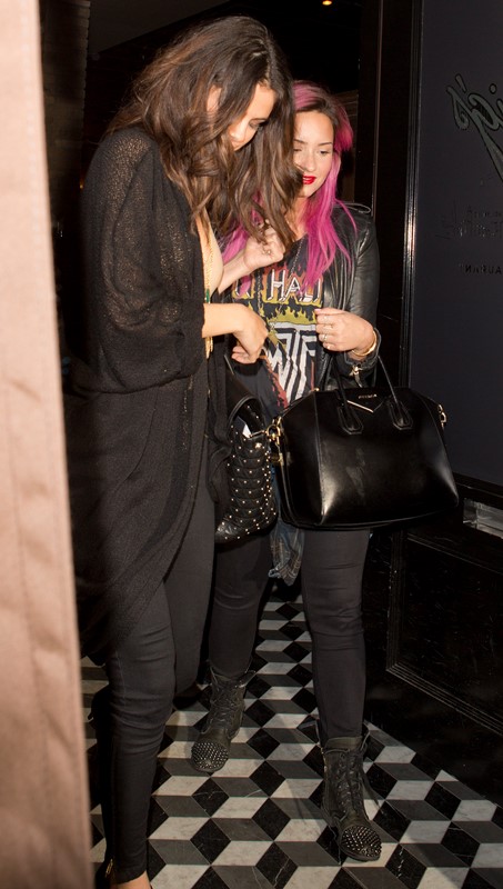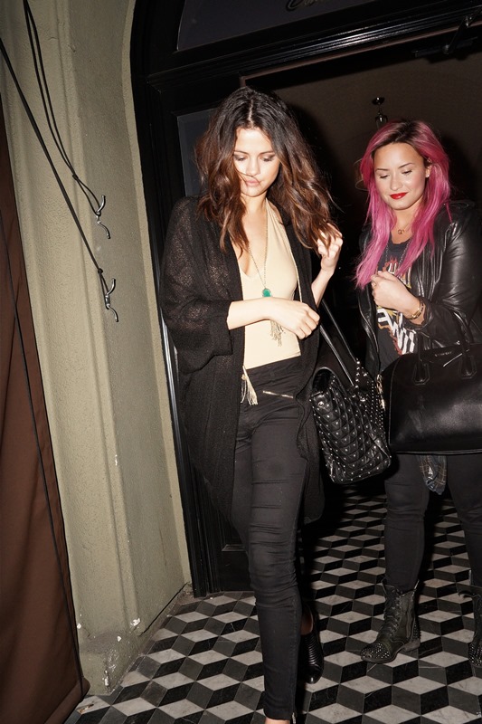 Selena Gomez’s on-off boyfriend Justin Bieber was arrested yesterday in Miami. She was in LA and in the evening, she and her old friend Demi Lovato hooked up for dinner. The paps were there. Coincidence or conspiracy?