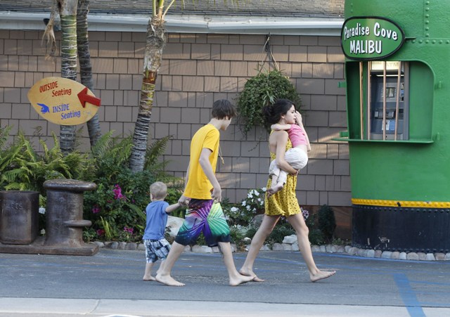 Here they are spending the weekend in Malibu with Bieber’s siblings, Jaxon and Jazmyn. (I will not comment on these names or the spelling of them but sometimes I wish blogging could come with facial expressions.)