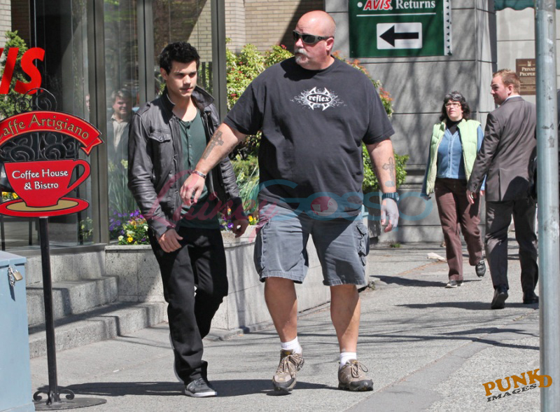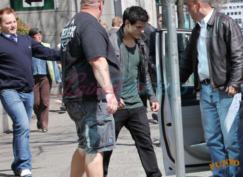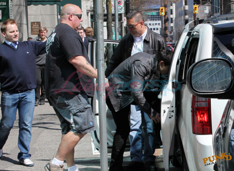 Anyway, Selena is Beezus and she’s filming in Vancouver and so is Taylor Lautner and this afternoon they popped into a coffee house downtown with her mom. That’s Selena covering her head, hiding behind a bodyguard, and that’s Taylor with the same bodyguard, both getting into a white SUV.