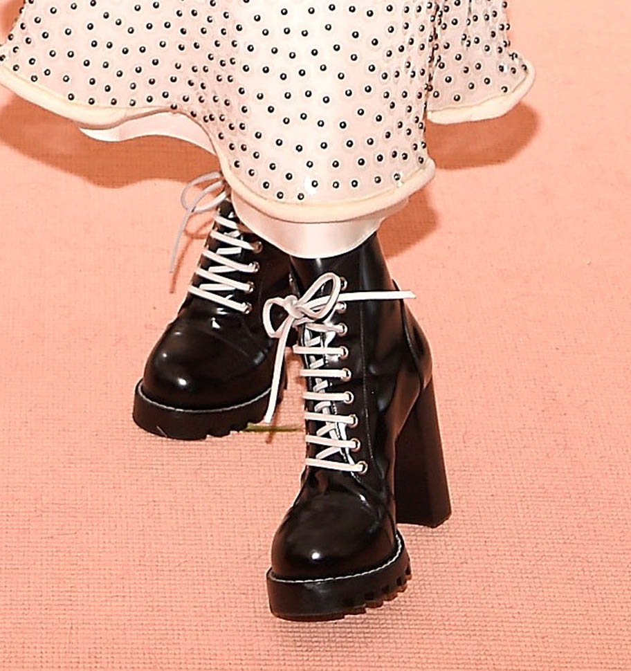 But, again, I’m coming back to these LV booties. This is the third pair I’ve posted – after Michelle Williams and Alicia Vikander. Selena’s with the white laces? Dope. The booties bring the personality. The attitude. And the theme. Think of the old lace-ups women used to wear under their skirts in the time of Les Miserables, and now modernised with badass edge. Perhaps how Fantine would be if she’d lived in a time that was kinder to women. I would also like to shout-out her makeup, done to great effect to show off that beautiful skin. Maybe the best face she’s ever had on a red carpet.